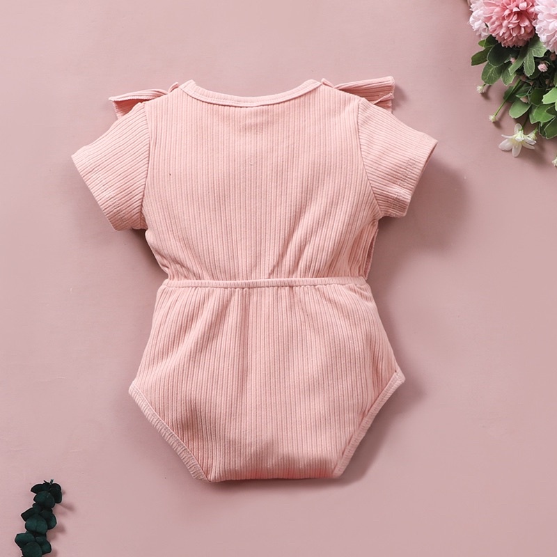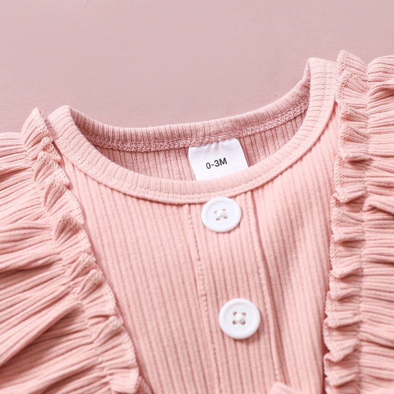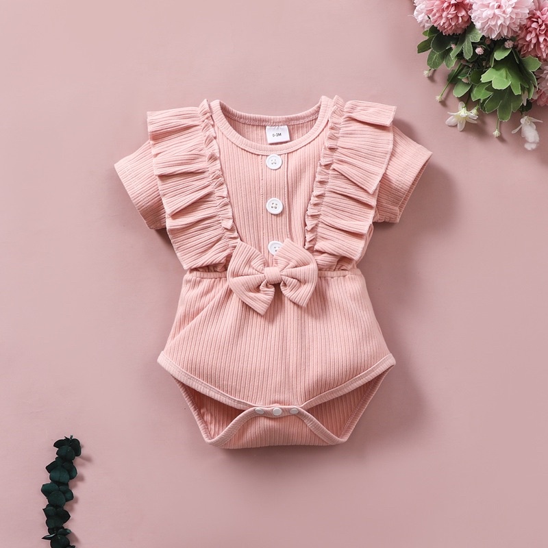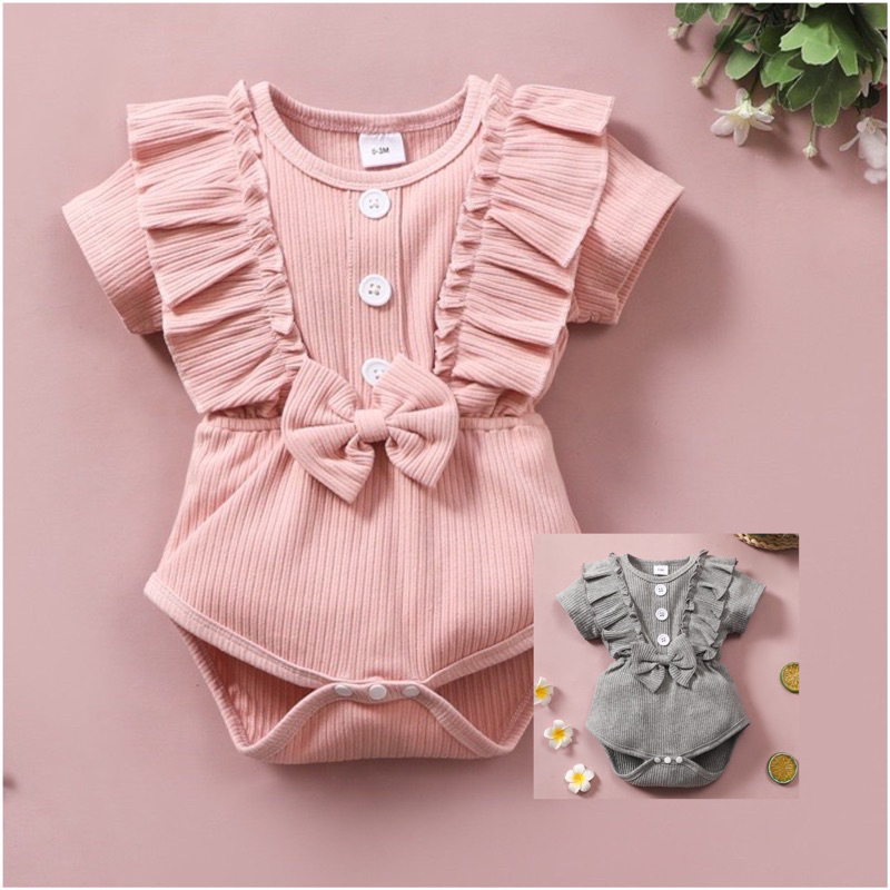baju bayi romper bayi flare knitt pink dusty impor 0-12 bulan