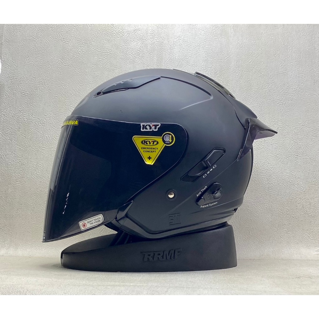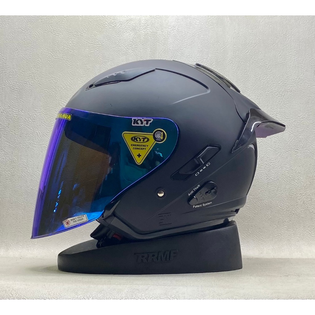 KYT Galaxy Flat R Solid Black Doff || Paket Ganteng - Spoiler - Helm Half Face Double Visor