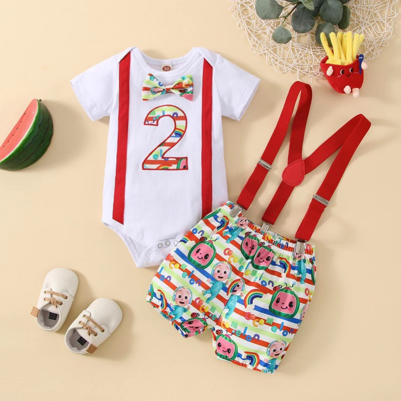 (1-2 TAHUN) Baju cocomelon Anak Bayi | Baby Romper Jumper Birthday Setelan Baju Ulang Tahun Anak Cocomelon
