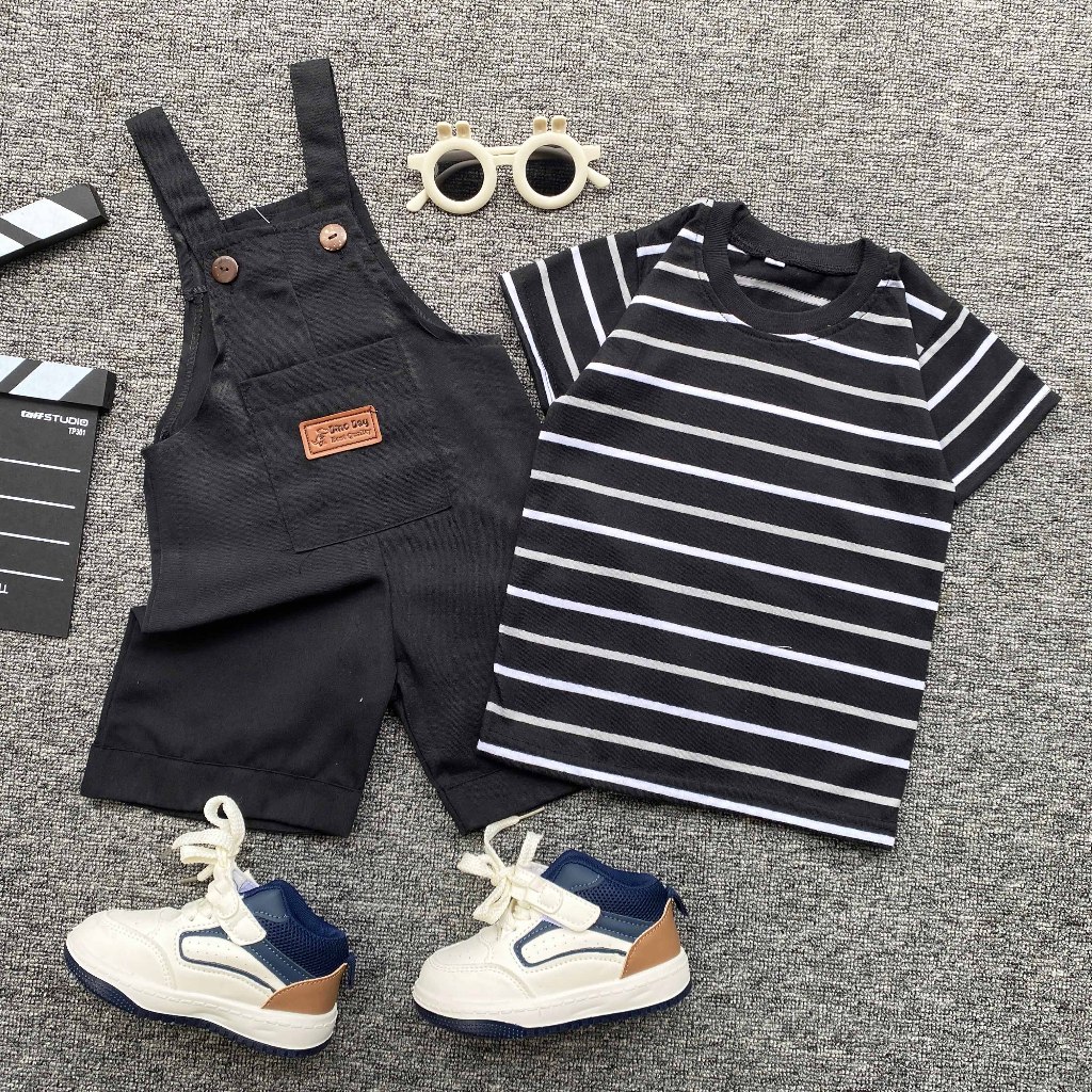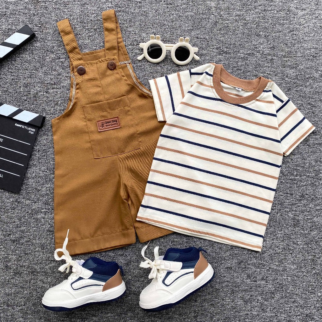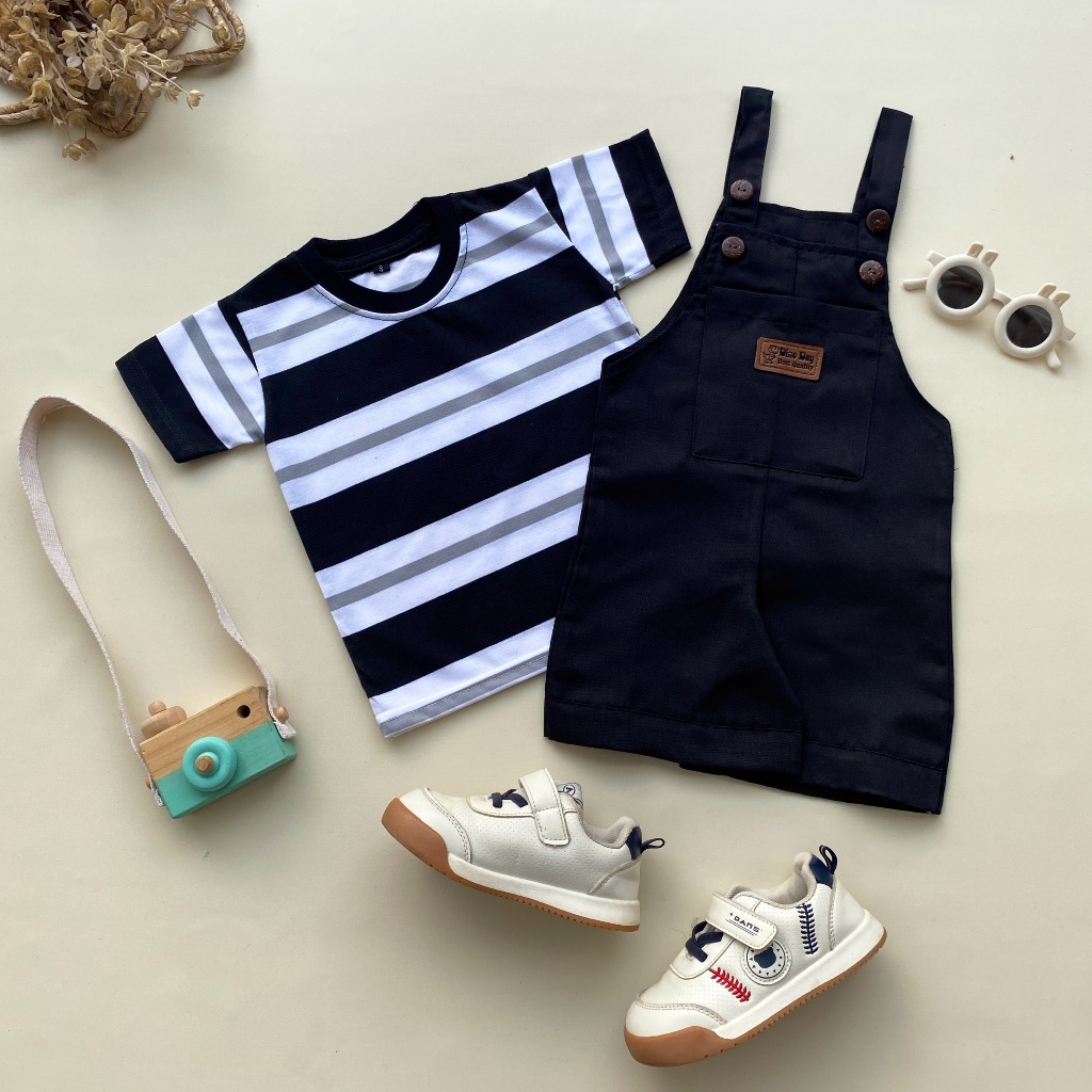 HAYUK KIDS X DINO DAY Setelan Anak Bayi Jumpsuit Overall Stripe Salur untuk Cowok dan Cewek