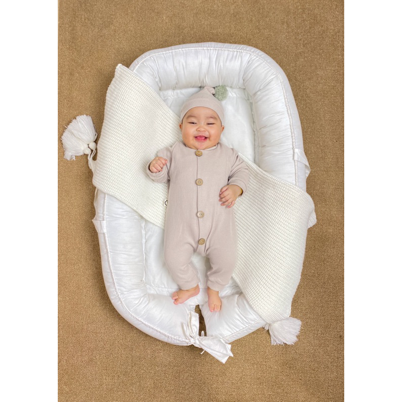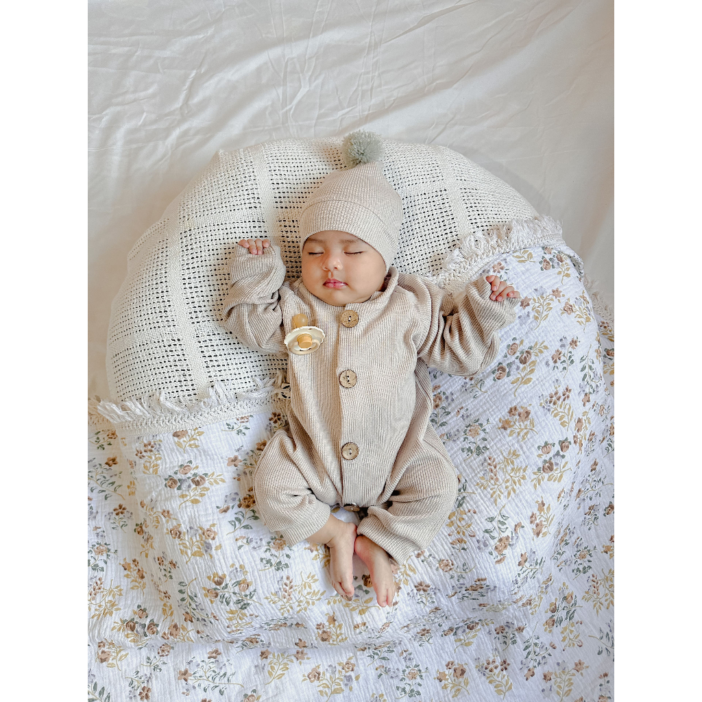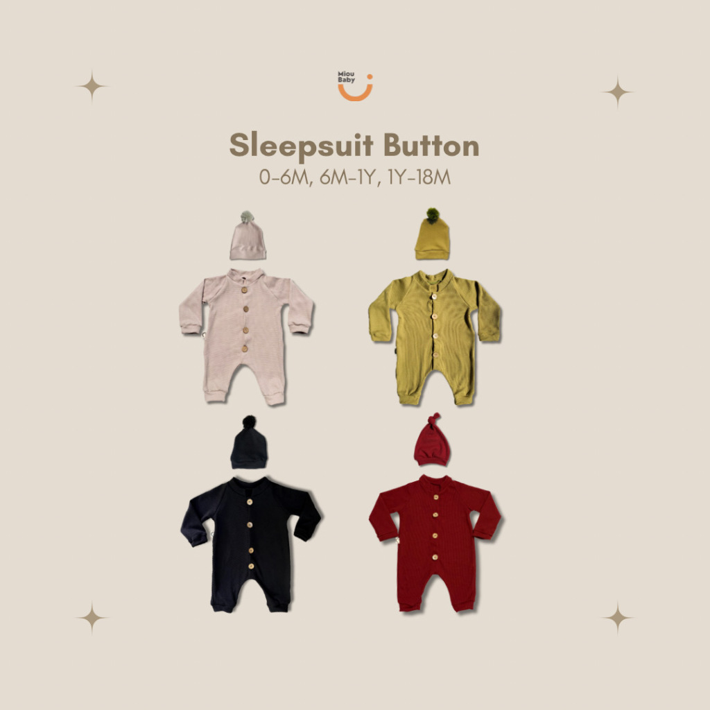 Mioubaby Sleepsuit Button Free Topi / kimono bayi / jumper bayi / jumpsuit bayi / hadiah lahiran / baju anak perempuan