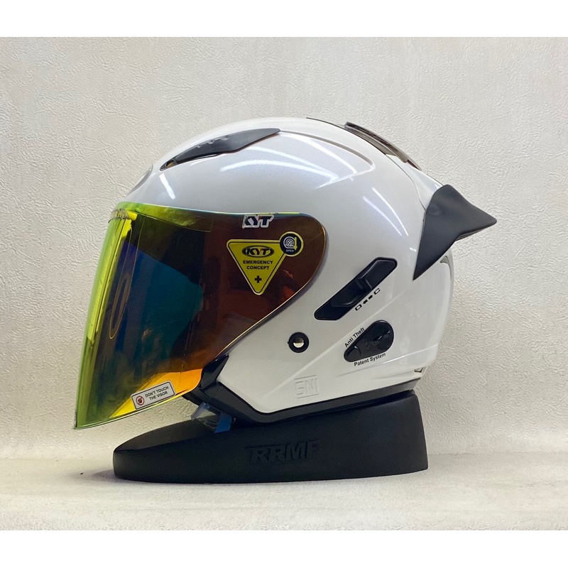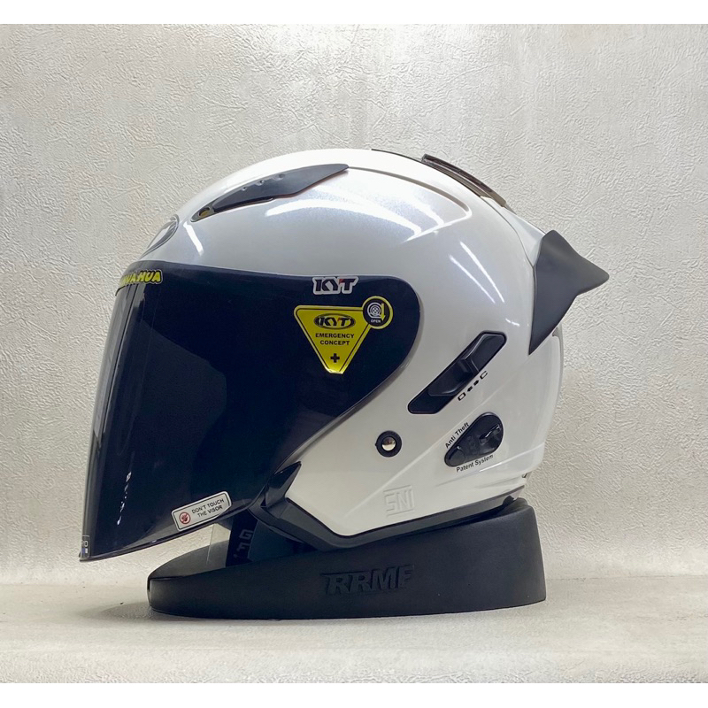 KYT Galaxy Flat R Solid White || Paket Ganteng Visor Iridium - Spoiler - Helm Half Face