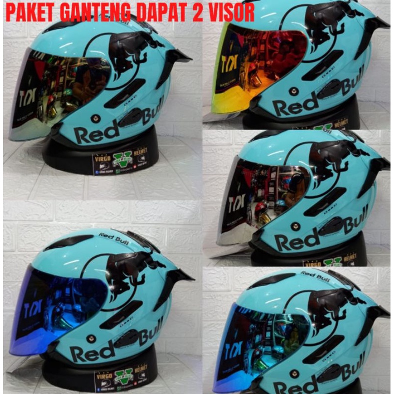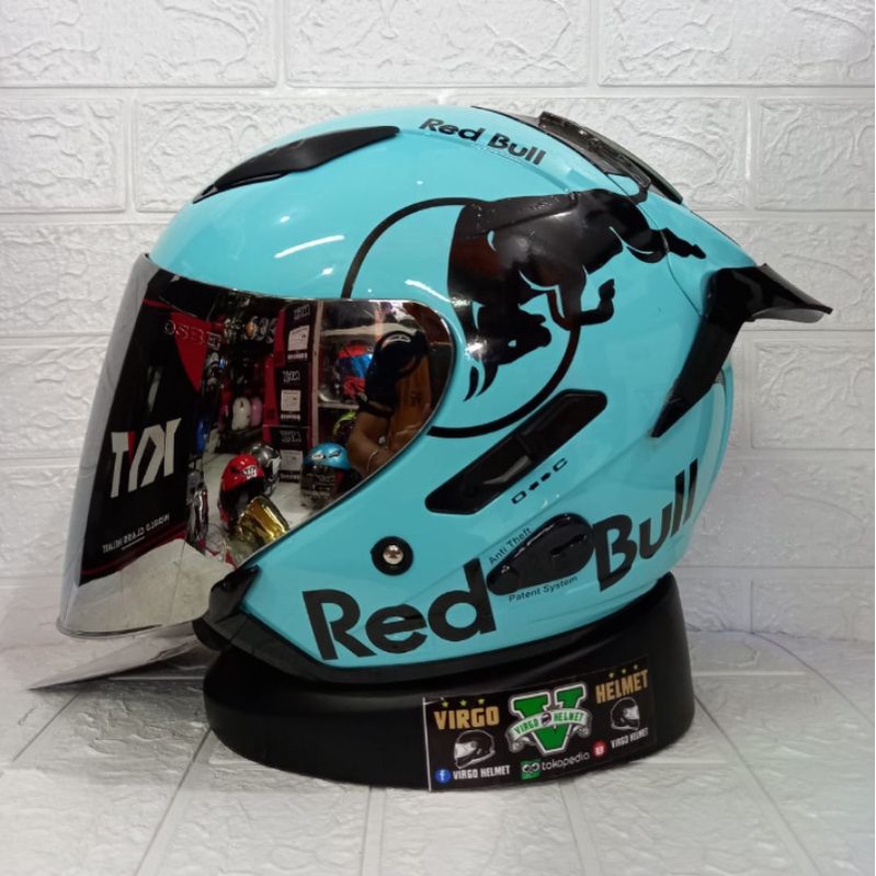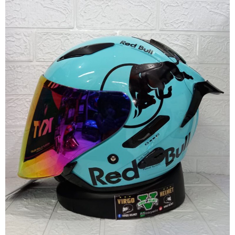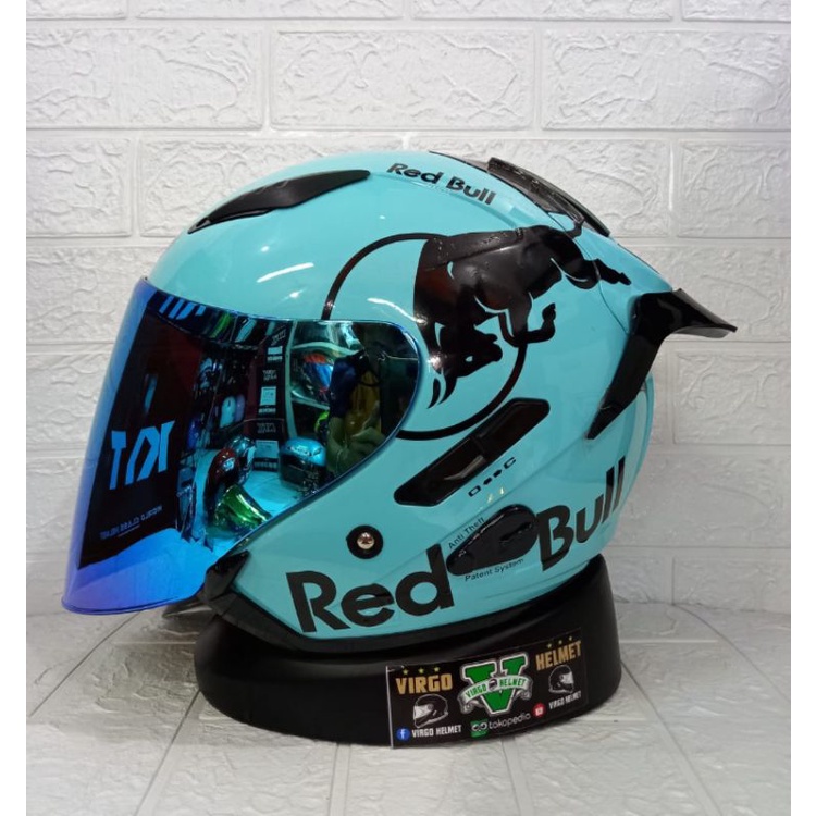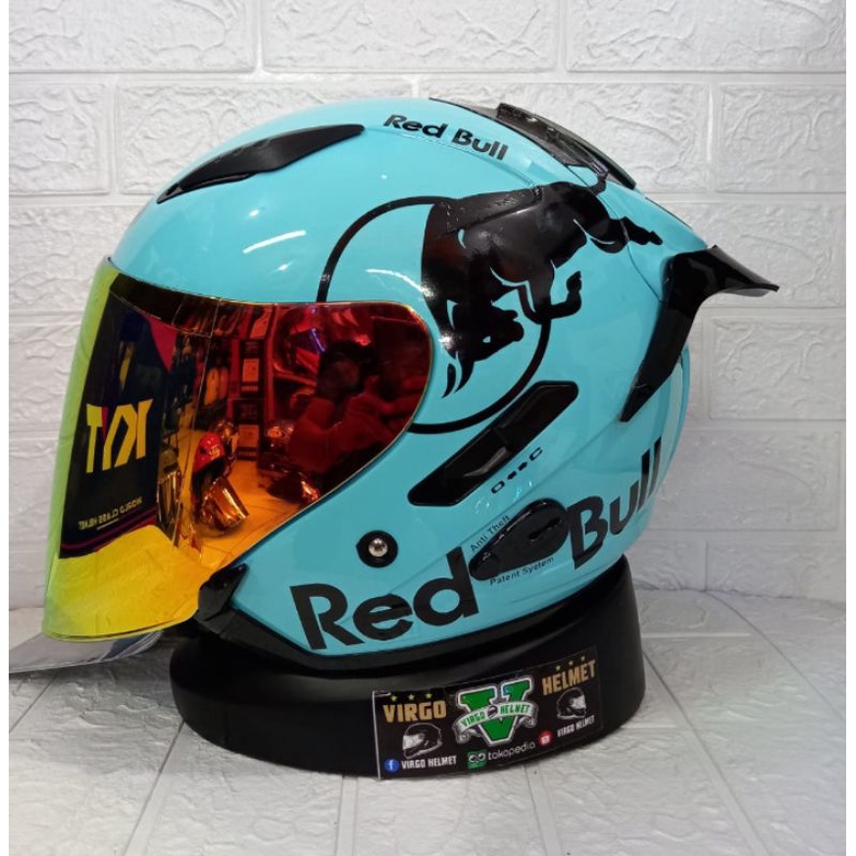 HELM KYT GALAXY FLAT R SOLID AQUA BLUE PAKET GANTENG REDBULL SNI DOT (ongkir termurah 2kg)