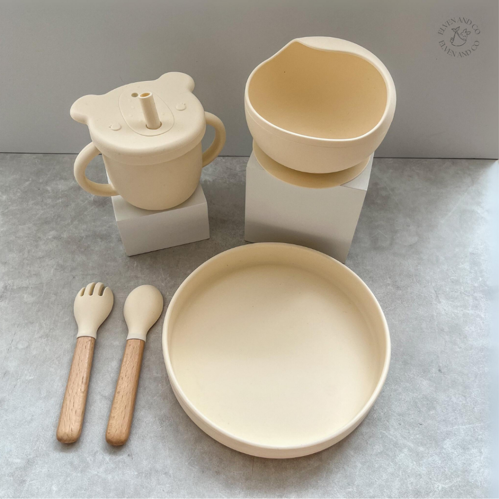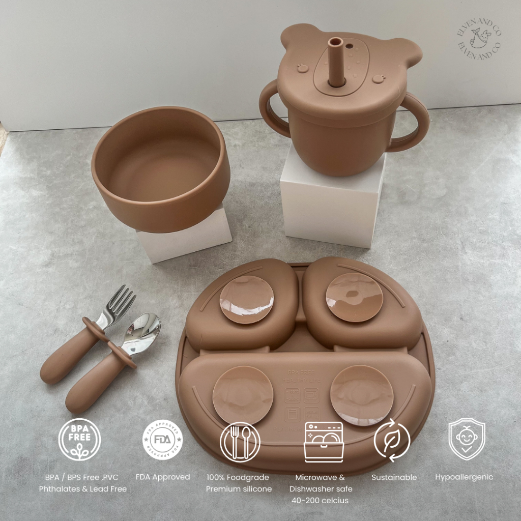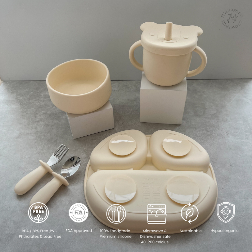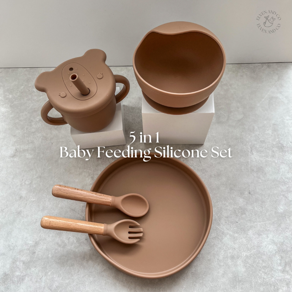Elvenandco 5 in 1 Premium Silicone Feeding Set | Set 5 Pcs Alat Makan Bayi Silicone