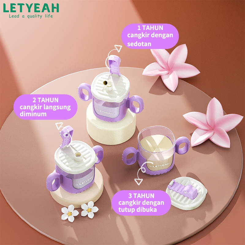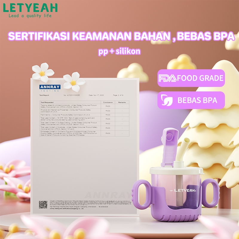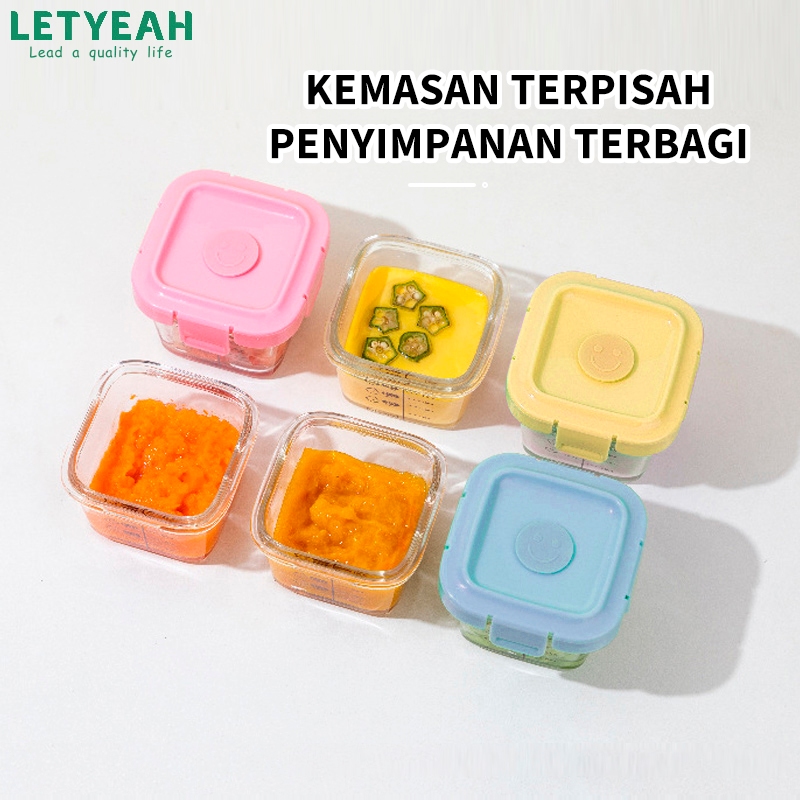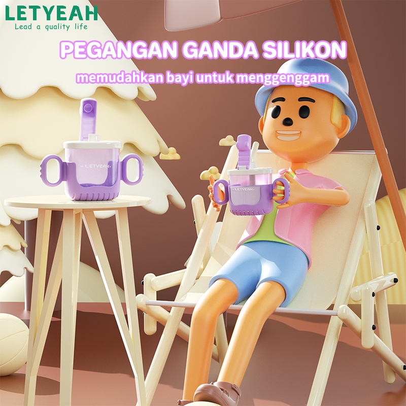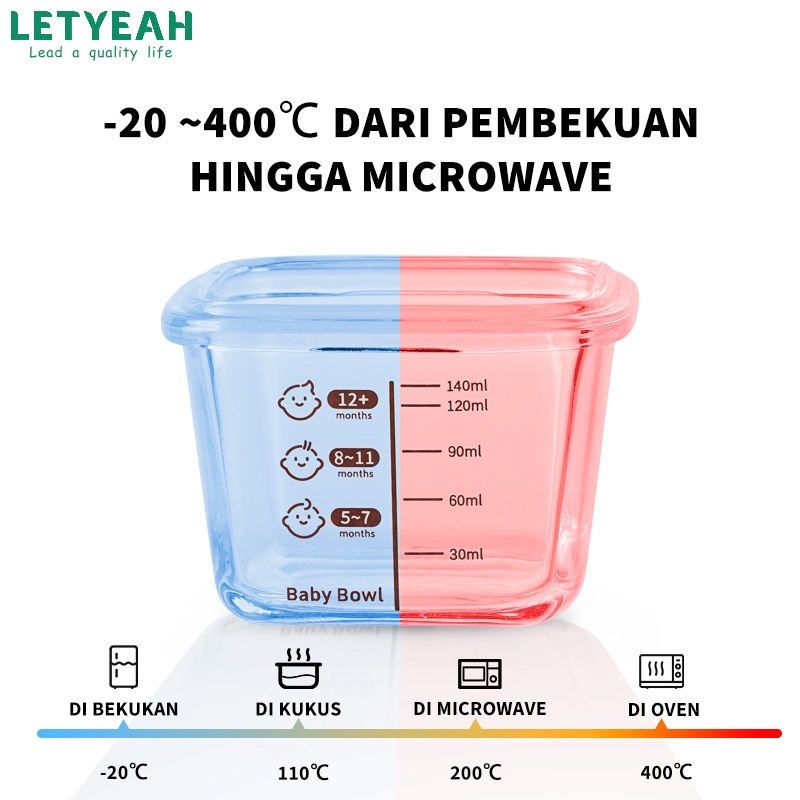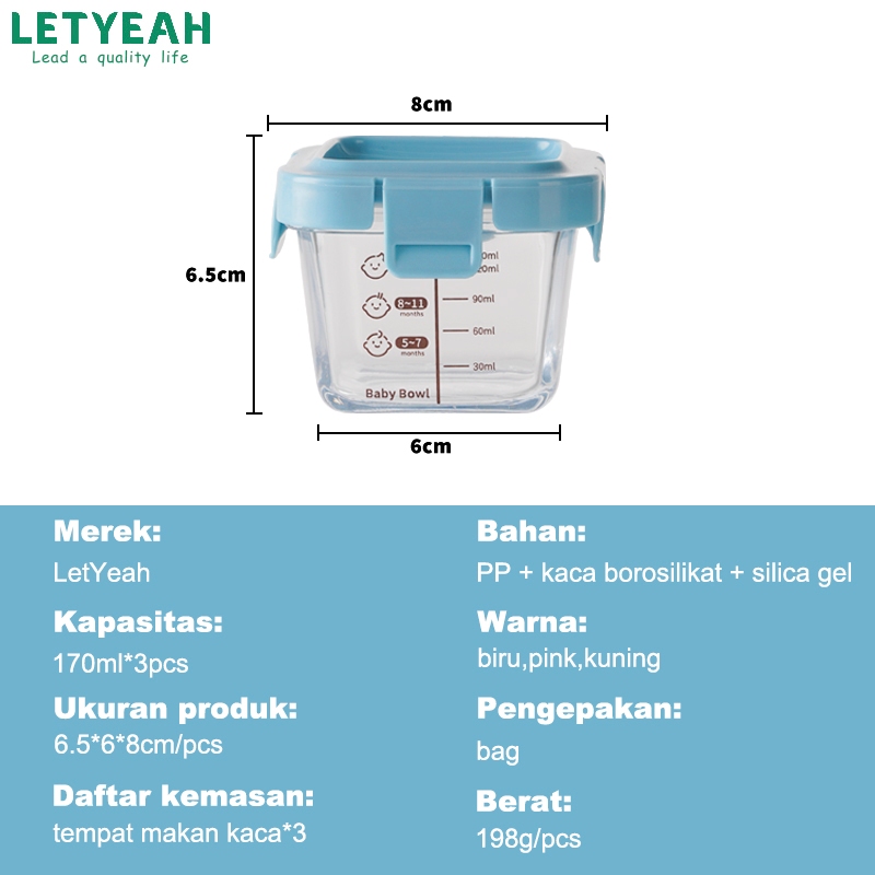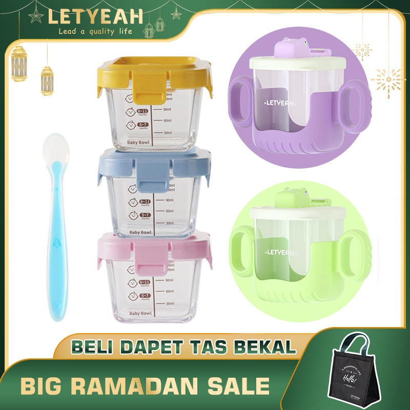 【5 PCS SET】[BPA FREE] LetYeah Baby Food Container Kaca + Sendok Silikon Bayi + Bayi Training Cup Sedotan 300ml