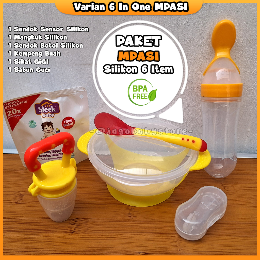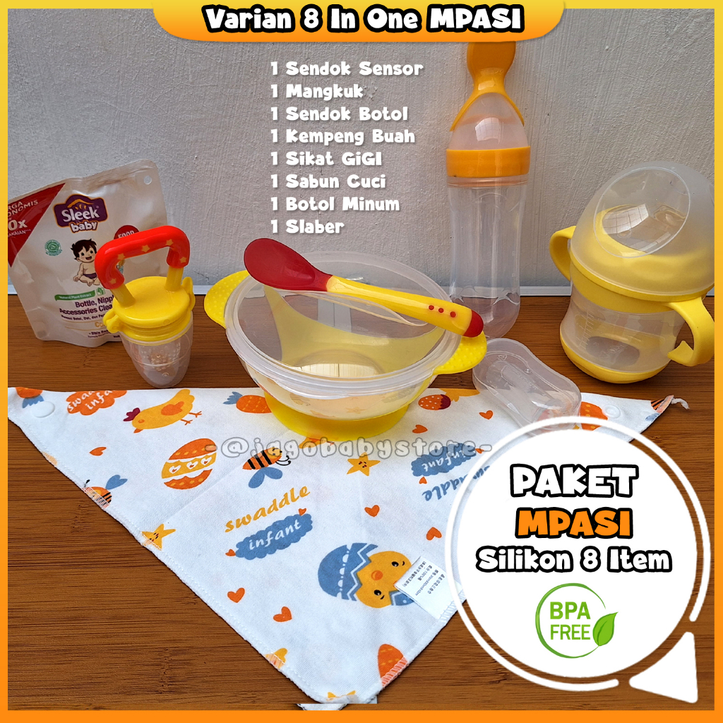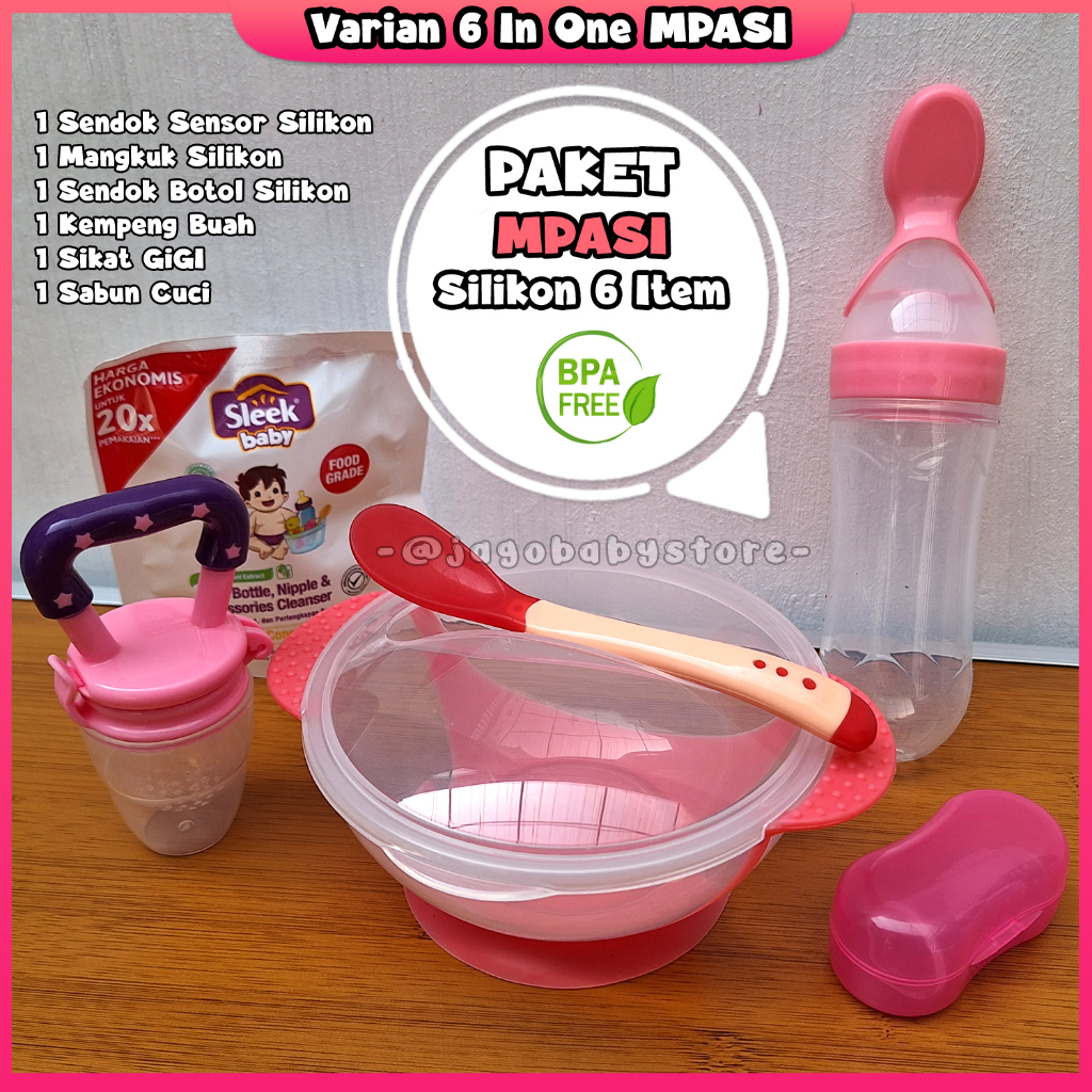 Paket MPASI Silikon Sendok Mangkuk Botol Lengkap Alat Makan Bayi