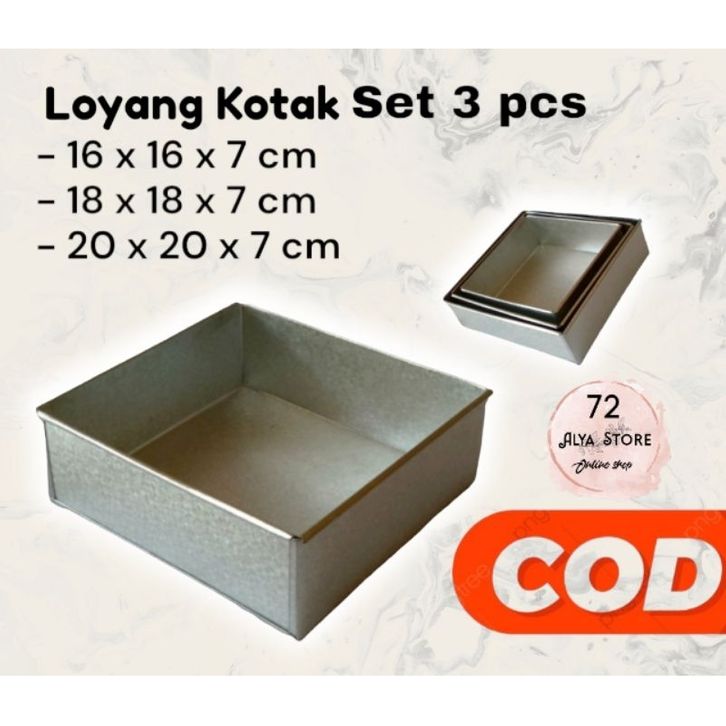 Loyang Kotak 1 Set isi 3 pcs Size 18 20 22 cm Tinggi 7 cm
