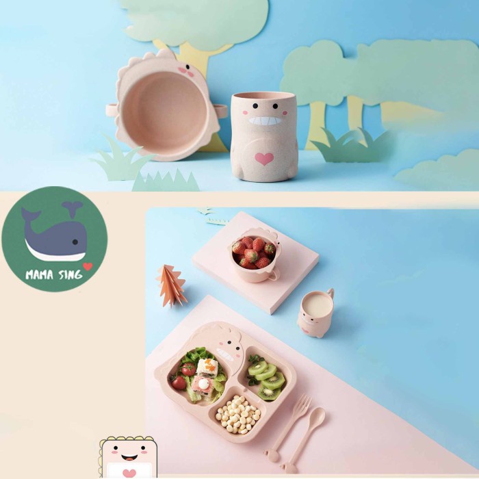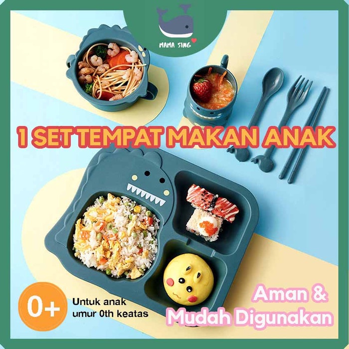 Tempat Makan Anak Dinosaurus Lucu & Aman - Peralatan Makan Bayi 1 Set