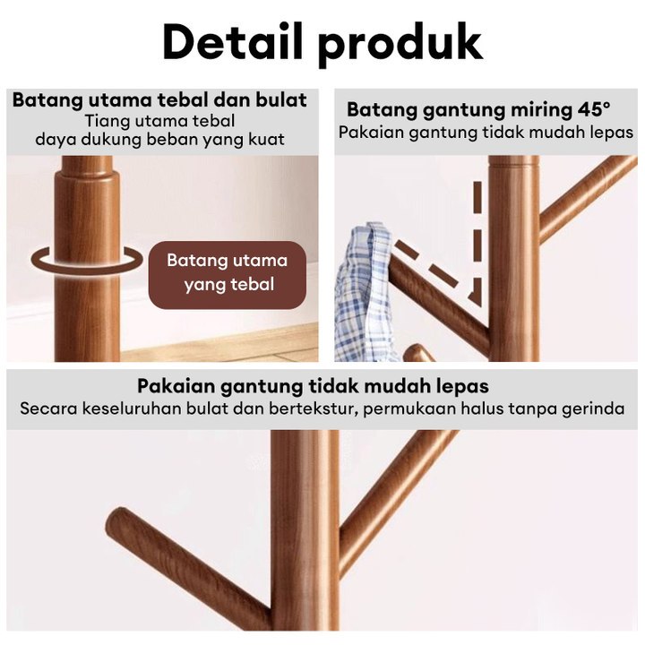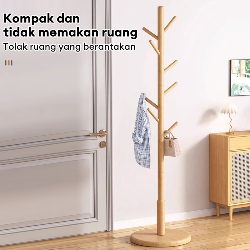 Gantungan Baju Berdiri Topi Multifungsi Rak mantel Stand Gantungan Kayu Simple Installation