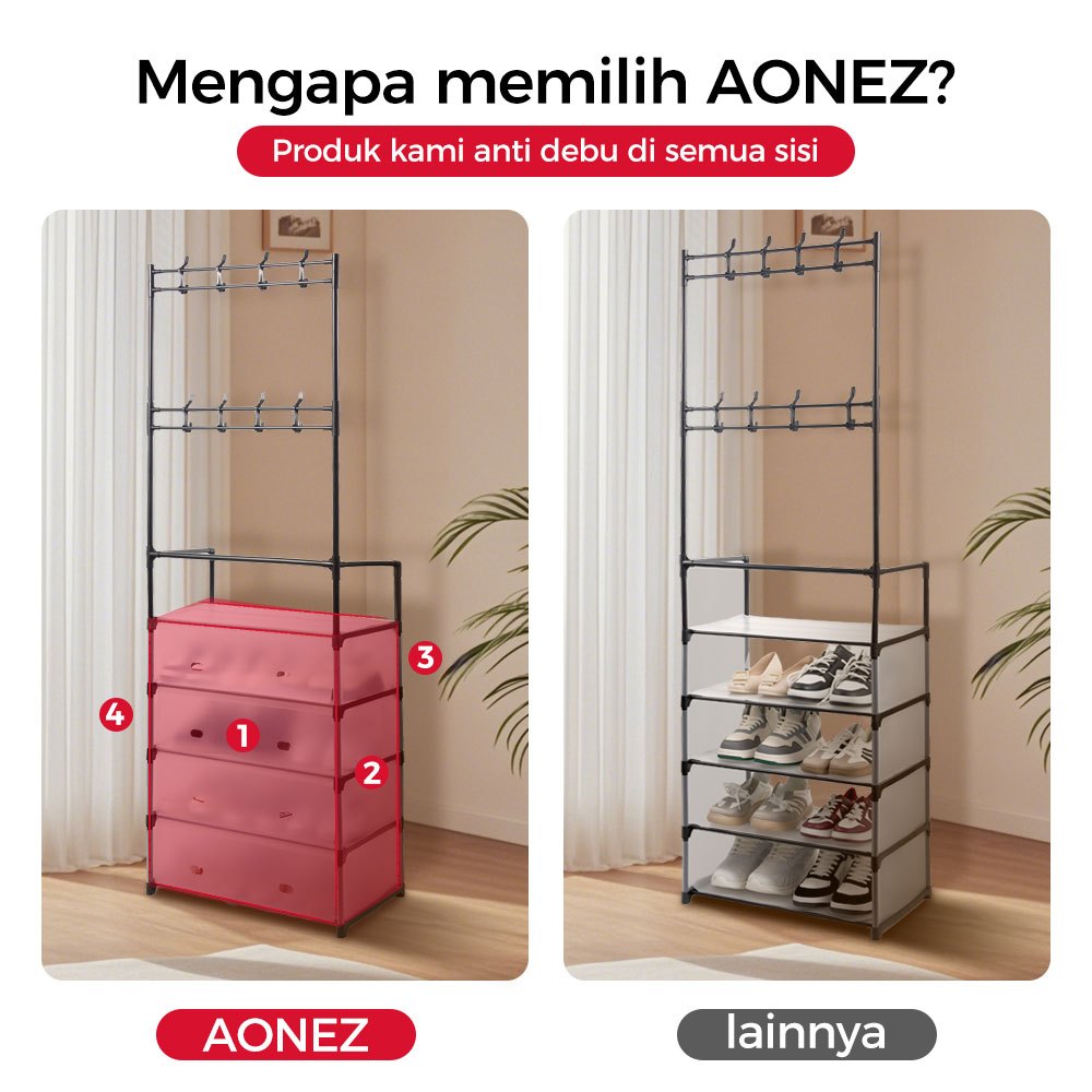 Configear Rak Sepatu Tertutup Anti Debu Serbaguna Rak Penyimpanan Dengan Penutup Gantungan Tas Pakaian Baju Stand Hanger