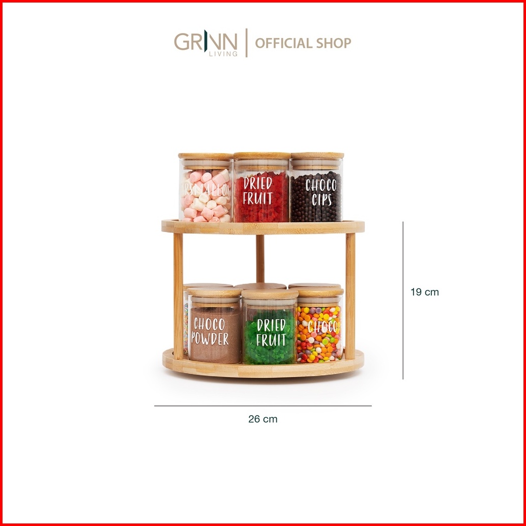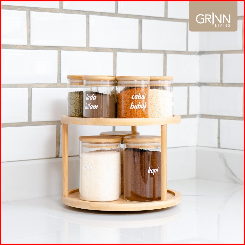 Grinn Living Hazel Rak Serbaguna Tempat Bumbu Dapur Putar Susun 2tingkat Dari Bambu Kayu Aesthetic