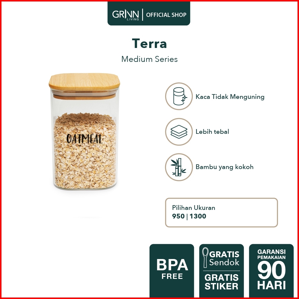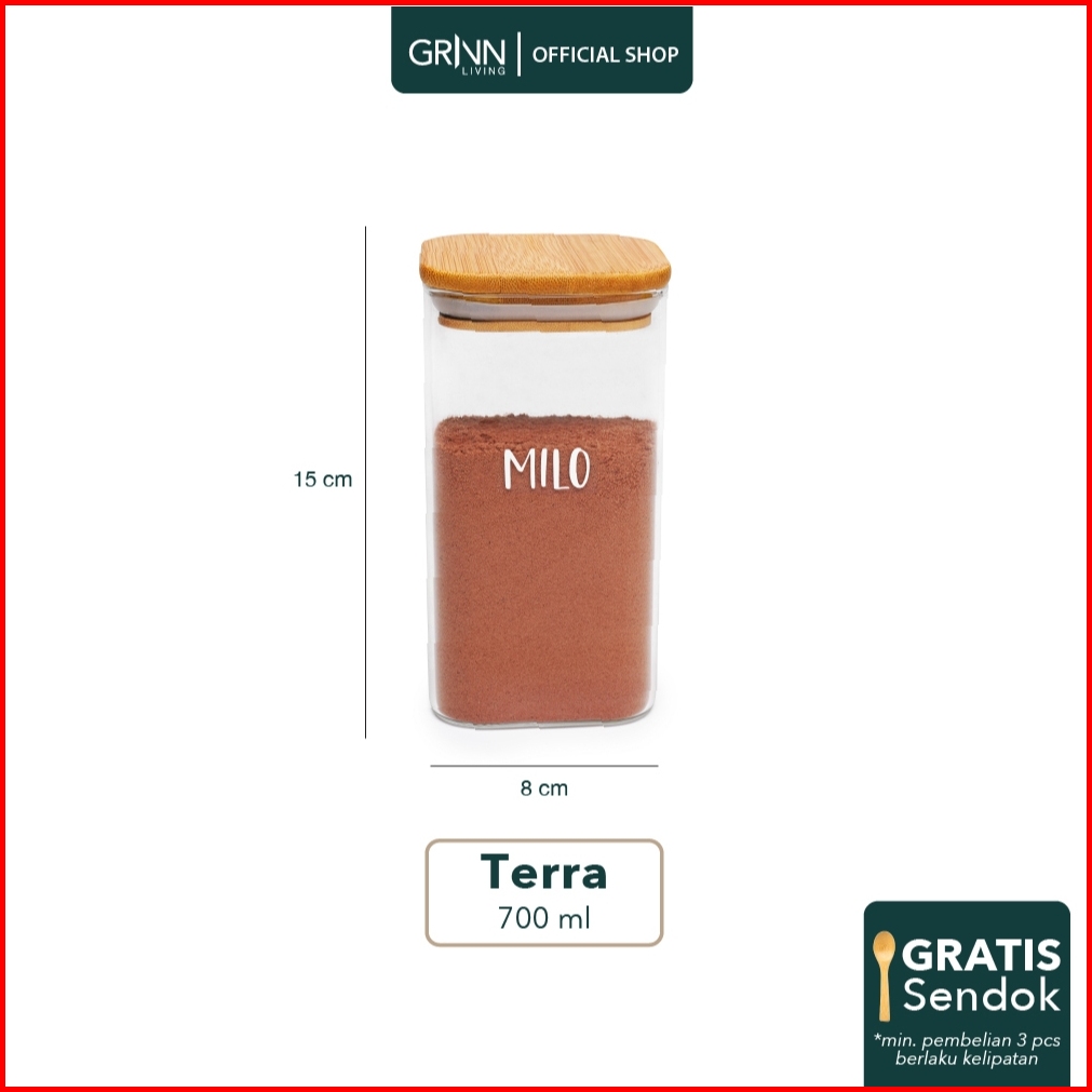Grinn Living Terra Jar Toples Kaca Kotak Tutup Kayu Bambu Tempat Kopi Teh Snack Medium Aesthetic