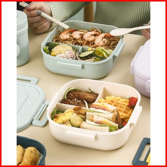 Bekal Makan Set Lunch Box Bento Anak Sekolah Kantor Dewasa Estetik 3 Sekat Anti Tumpah Gratis Sumpit Sendok