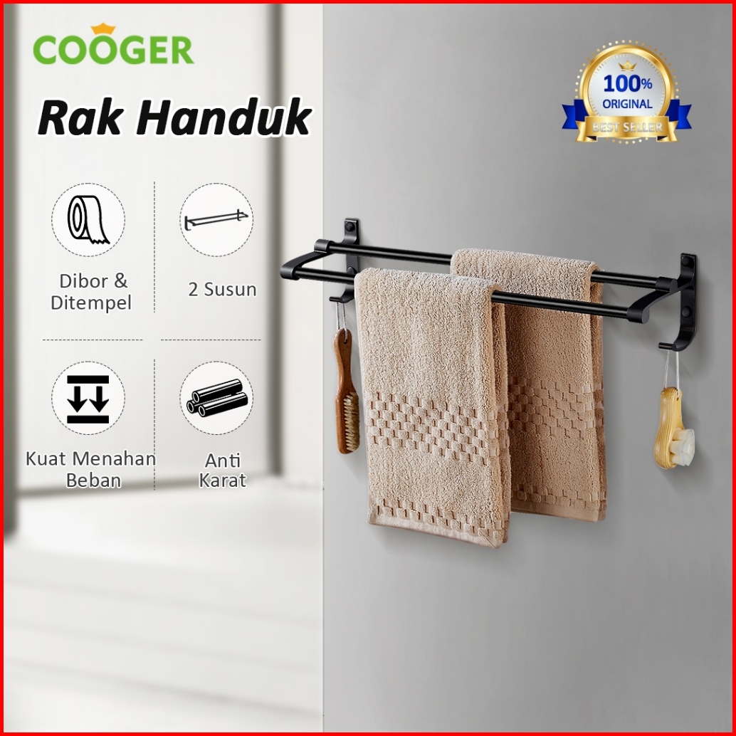 Cooger Rak Jemuran Handuk Towel Bar Towel Hanger Rak Handuk Kamar Mandi Serbaguna Alumunium 60cm Rak Gantungan Kamar Man