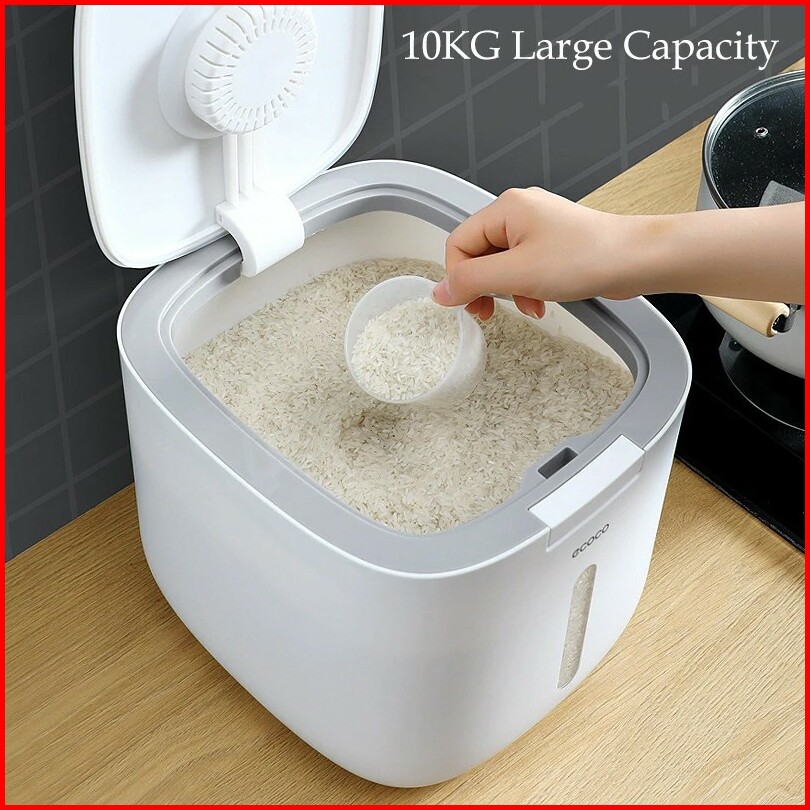 Ecoco Automatic Opening Rice Bucket Large - Tempat Kontainer Beras Anti Kutu Anti Air Anti Lembab Dobel Silicon Seal 10l