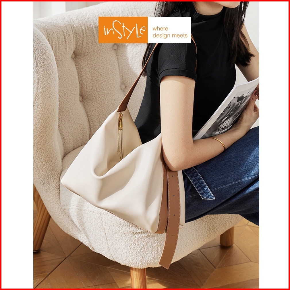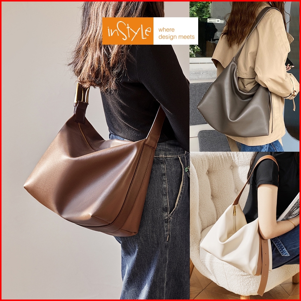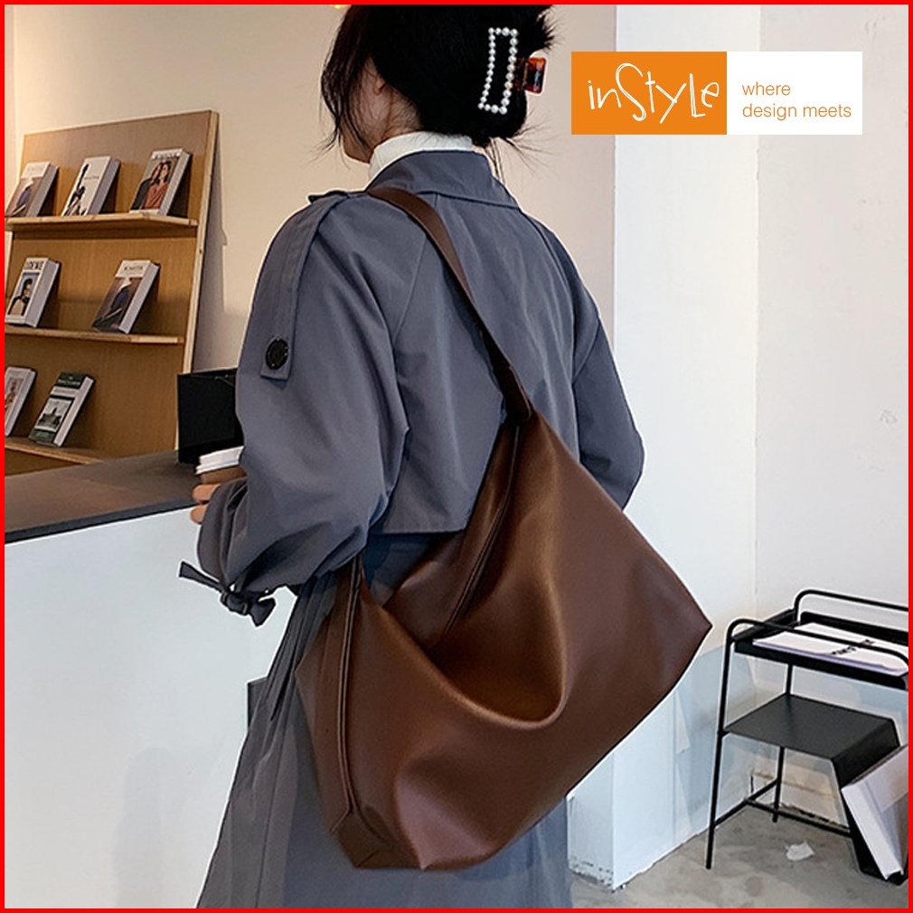 Tas Bahu Selempang Wanita Korean Vintage Style Shoulder Bag Besar Kulit Pu Leather Lembut T2-004