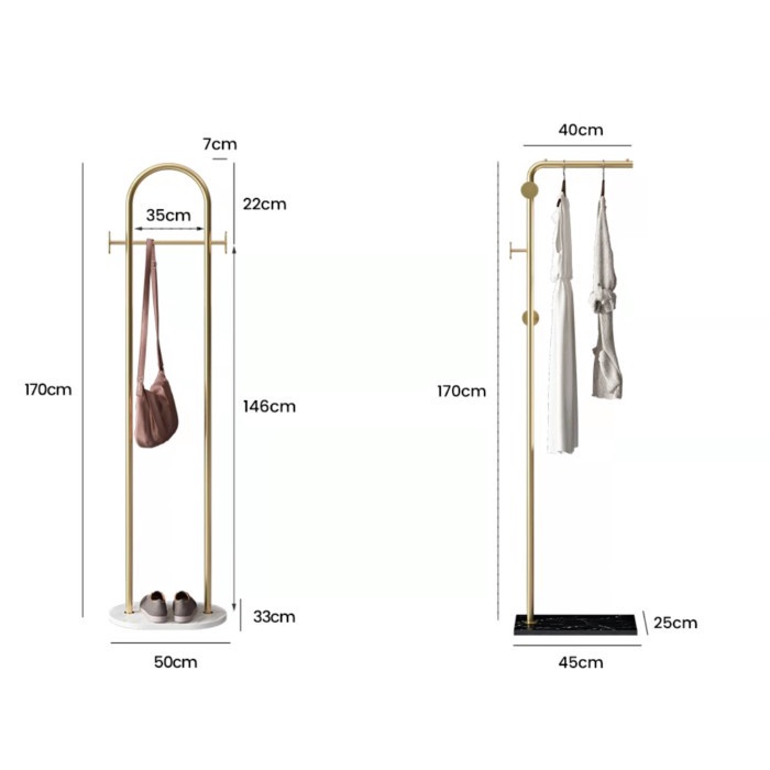 Goland Home Stand Gantungan Baju Besi dan Tas Topi Minimalis Multifungsi Alas Marmer