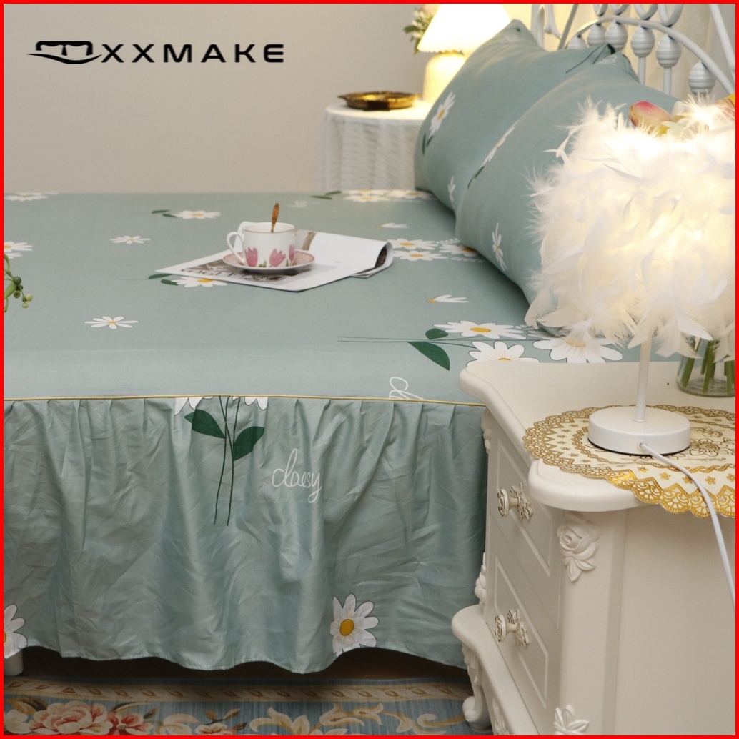 Xxmake Sprei Rumbai 90 120 160 180 4 Ukuran Seprei Bed Cover Bedskirt Pola Bunga Aster