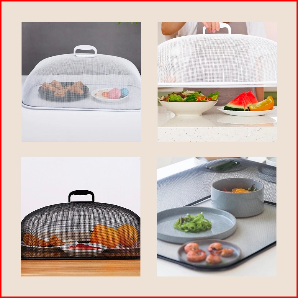 Tudung Saji Estetik Penutup Makanan Minimalis Rectangular Mesh Food Cover - Tudung Saji Kawat Stainless Kotak Warna Hita