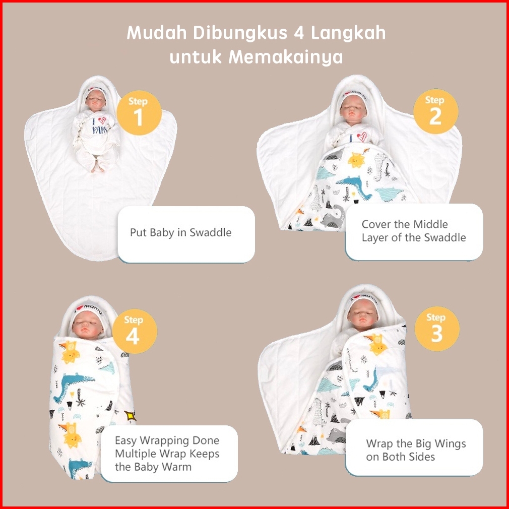 Baby Wrappbayi Wrapper Dengan Topi Bernapas Super Lembut 100 Katun Swa210 Bedong Bayi Motif