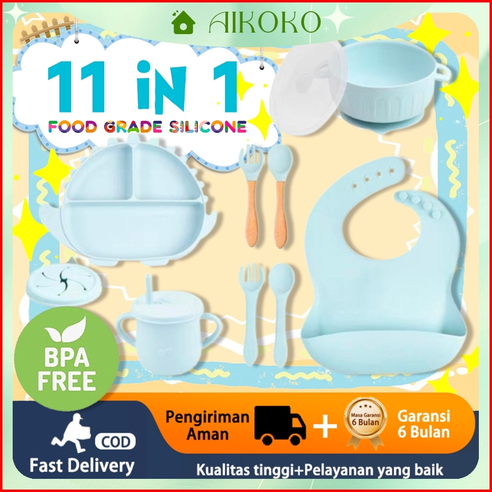 11 In 1 Peralatan Makan Bayi Silikon Premium Baby Feeding Set Silicone Bpa Free Waterproof Mpasi Alat Pemberian Makanan
