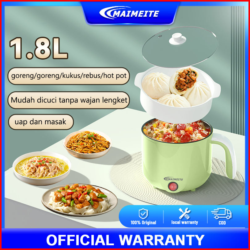 Maimeite Panci Listrik Serbaguna 1.8l Multifungsi Stainless Panci Elektrik Non-stick
