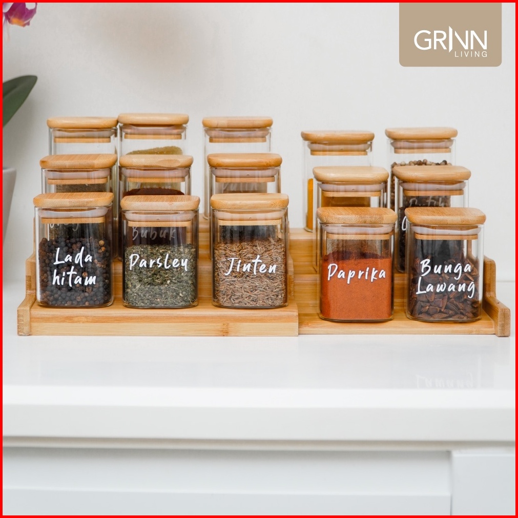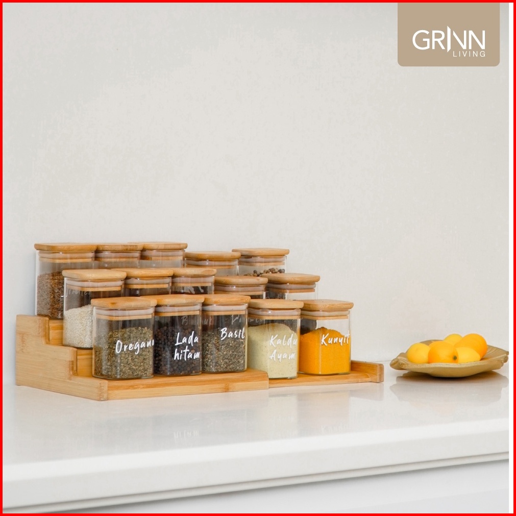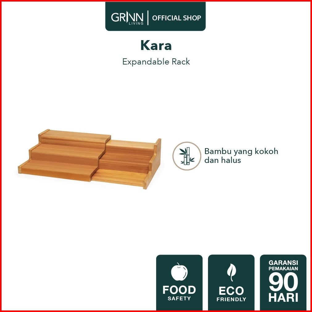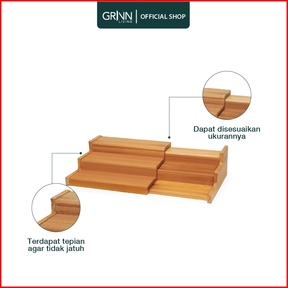 Grinn Living Kara Expandable Rak Bumbu Dapur Serbaguna Bisa Dilebarkan 3 Tingkat Rak Bambu Kayu