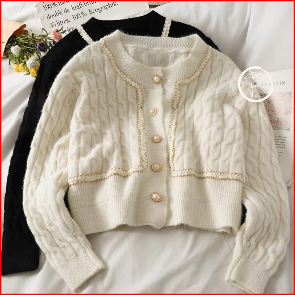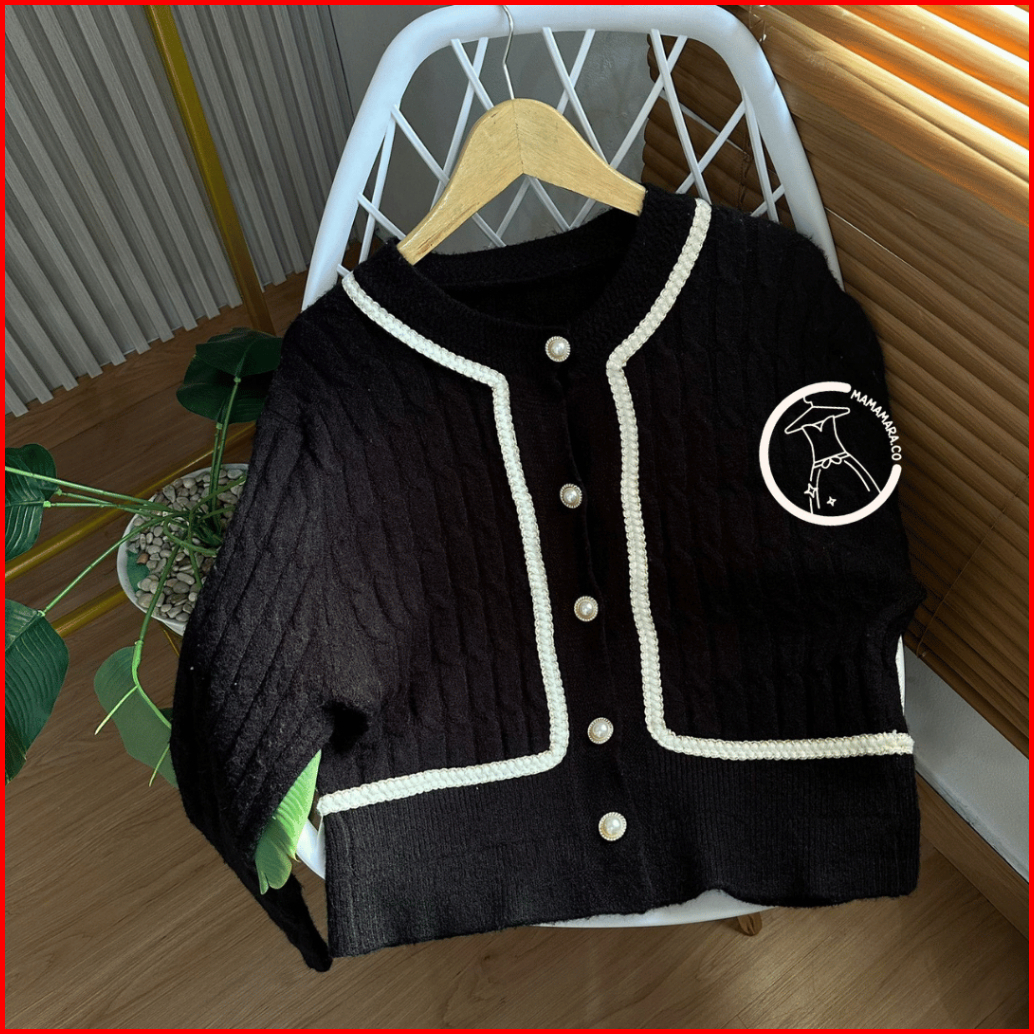 Mamamara - Cardigan Wol Rajut Korean Style Ruffle Rompi Mutiara
