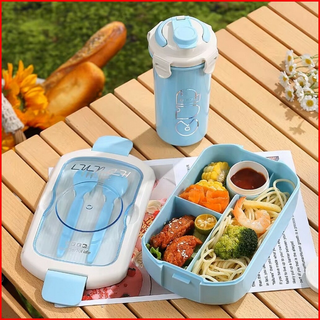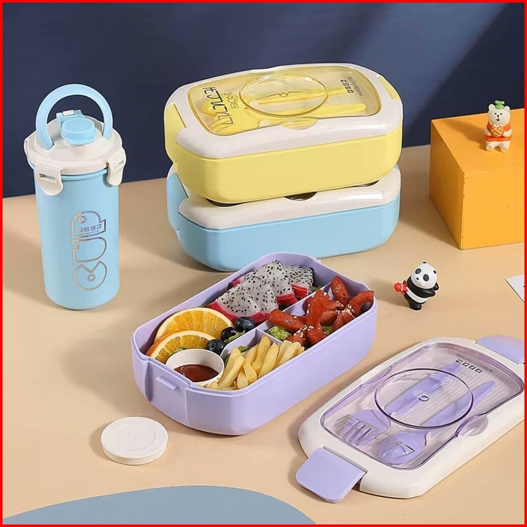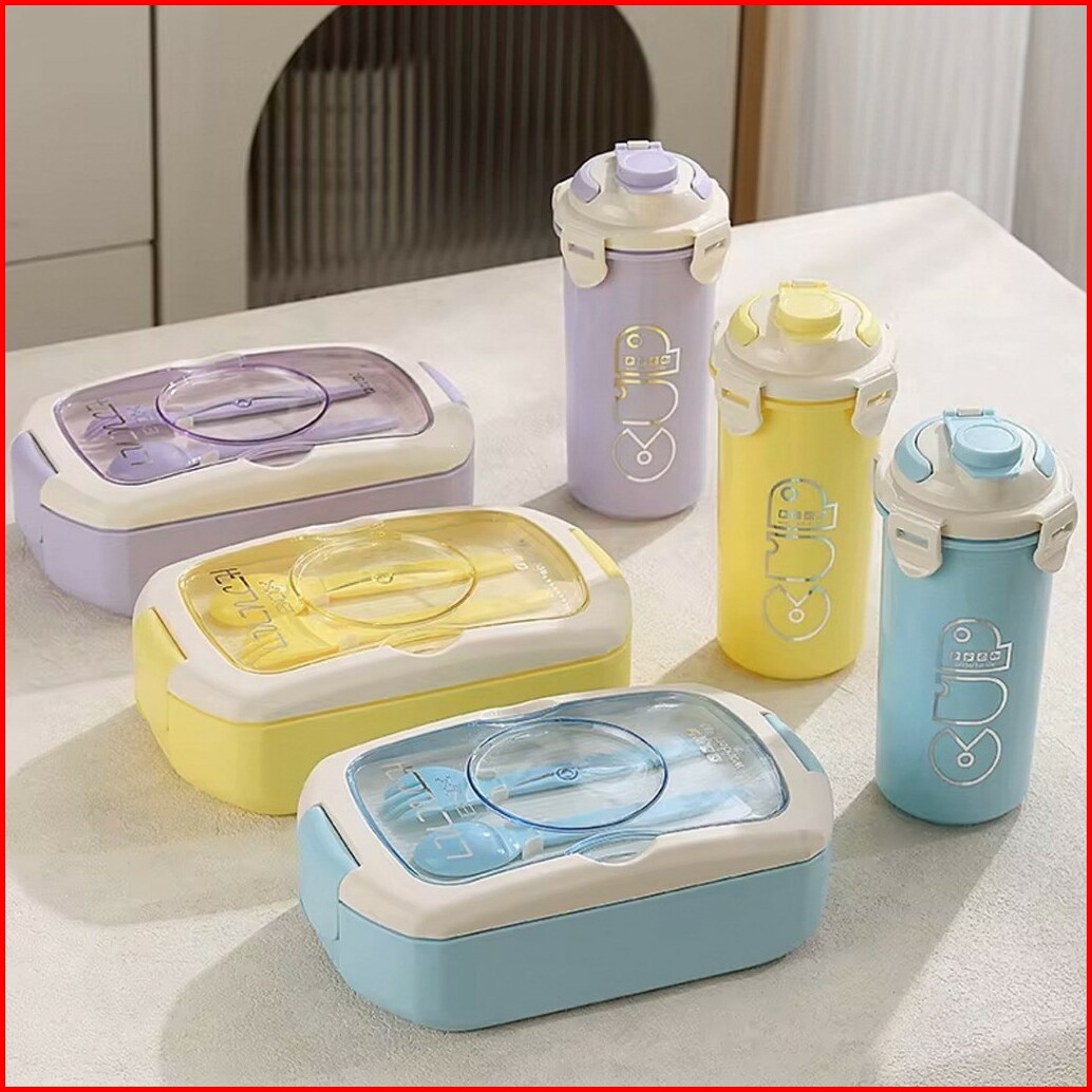 Lunch Box With Water Bottle Set Lengkap Botol Minum Sendok Garpu 375-214