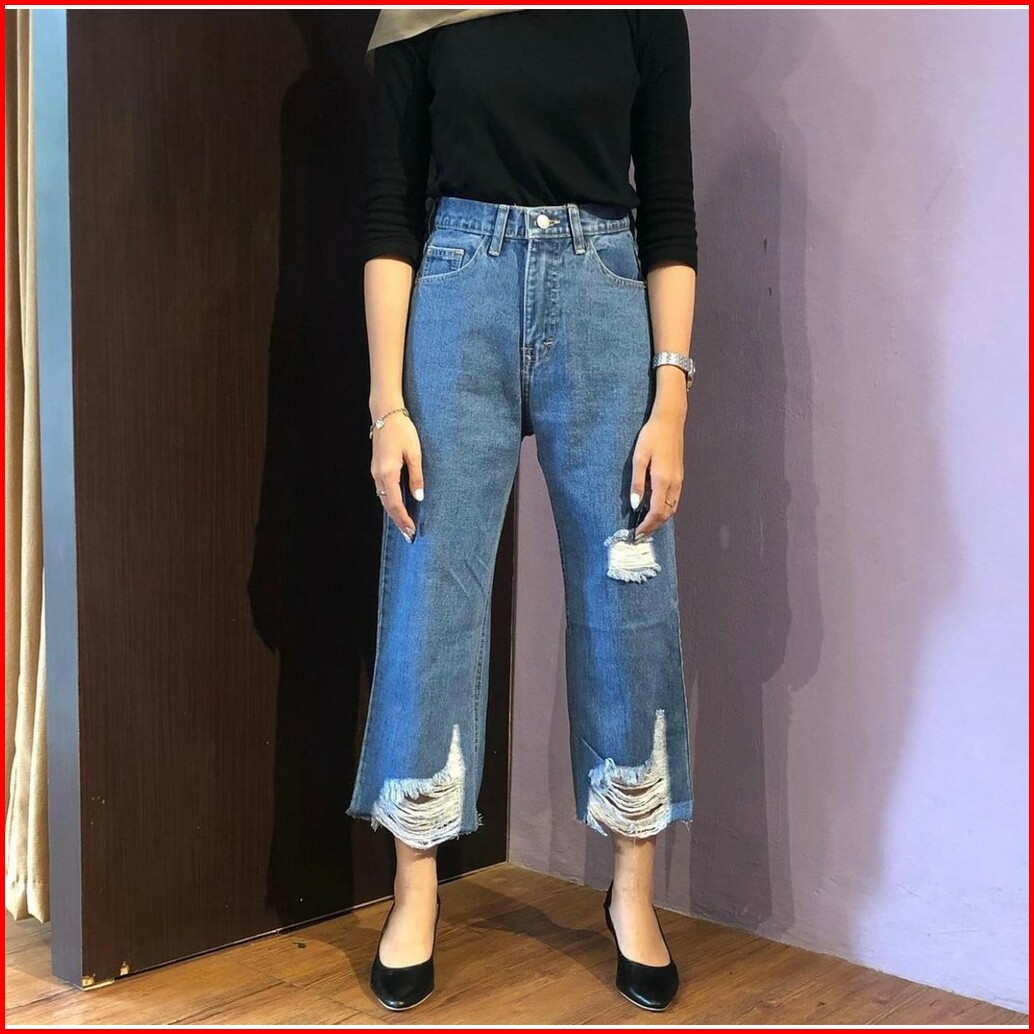 Trivela - Chlaudy Cullotes Jeans 27-34 Jumbo Celana Jeans Kulot Rawis Sobek