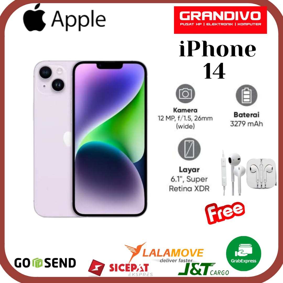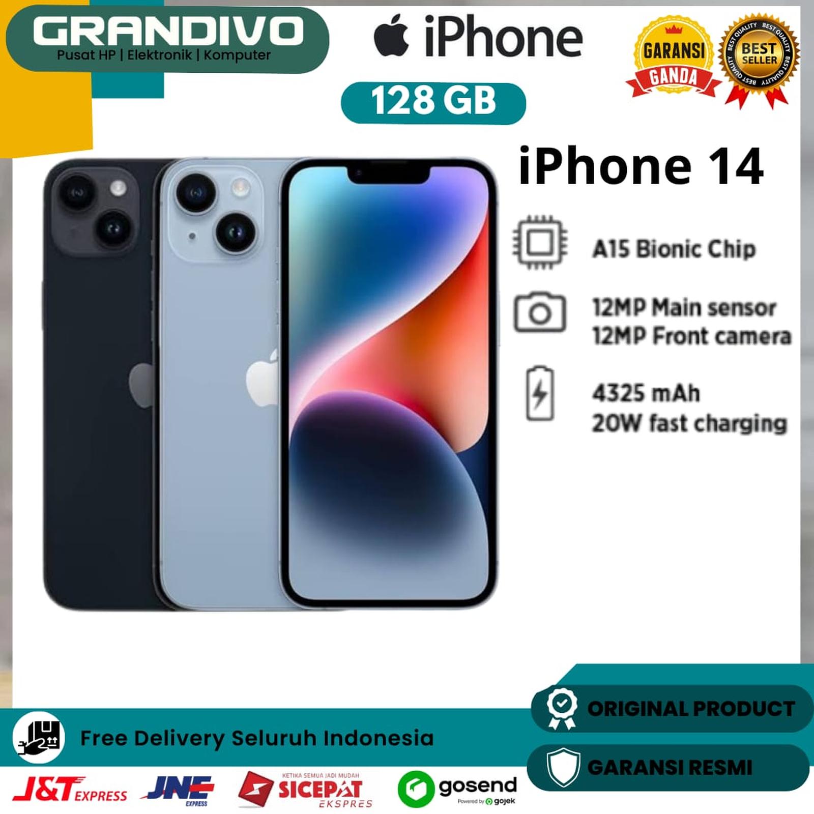 Ibox Apple iPhone 14 128GB Midnight Purple Starlight Red Blue Garansi Resmi - Grandivo