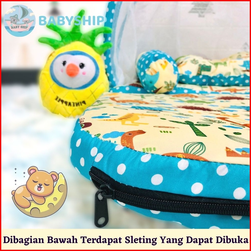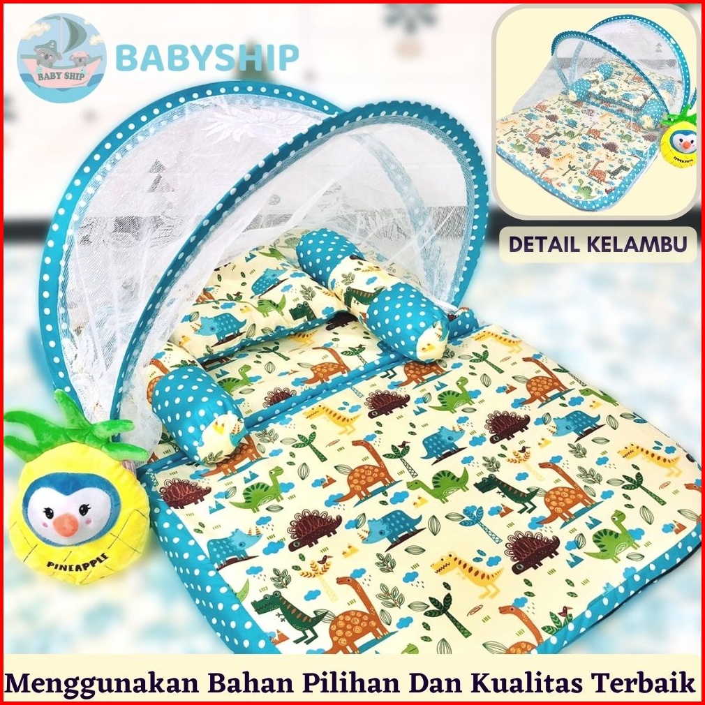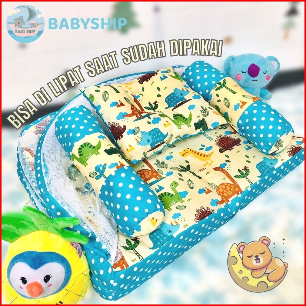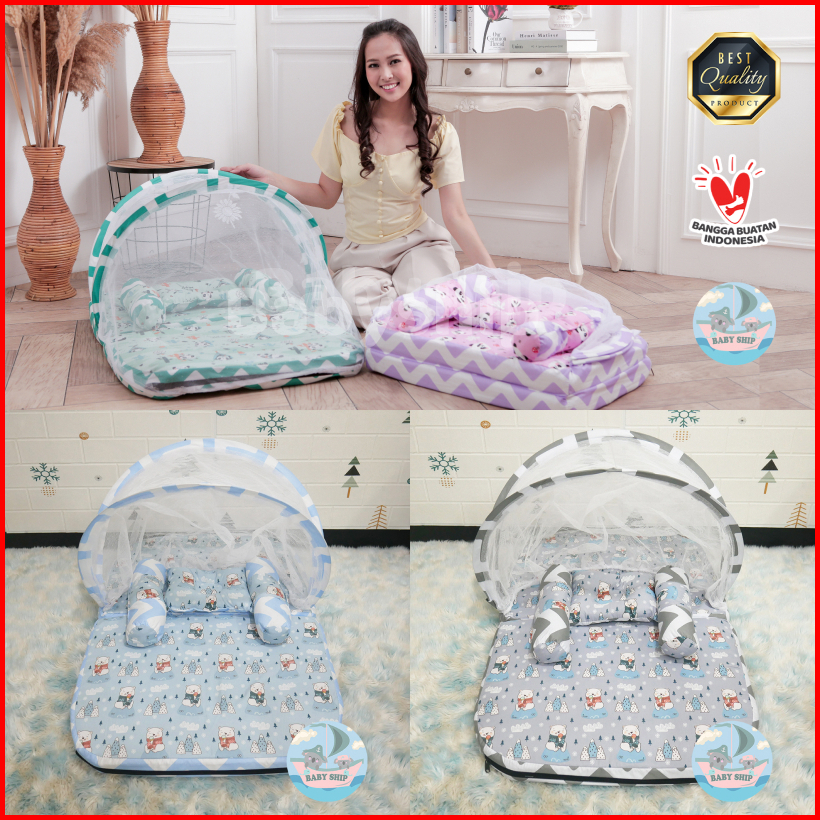 Kasur Bayi Kelambu Lipat Tempat Tidur Bayi Lipat - Set Bantal Guling Free Tas Mika