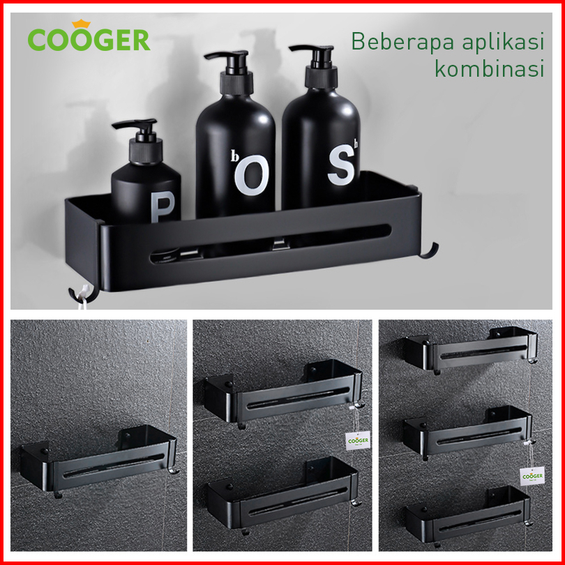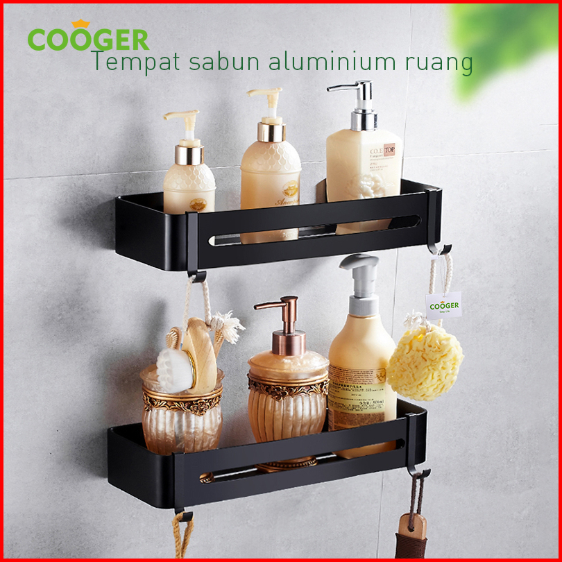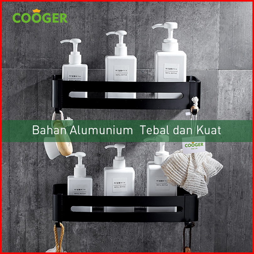 Cooger Rak Kamar Mandi Persegi Alumunium 1 Susun Tempel Dinding Serbaguna Tempat Penyimpanan Sabun Odol Bumbu Dapur