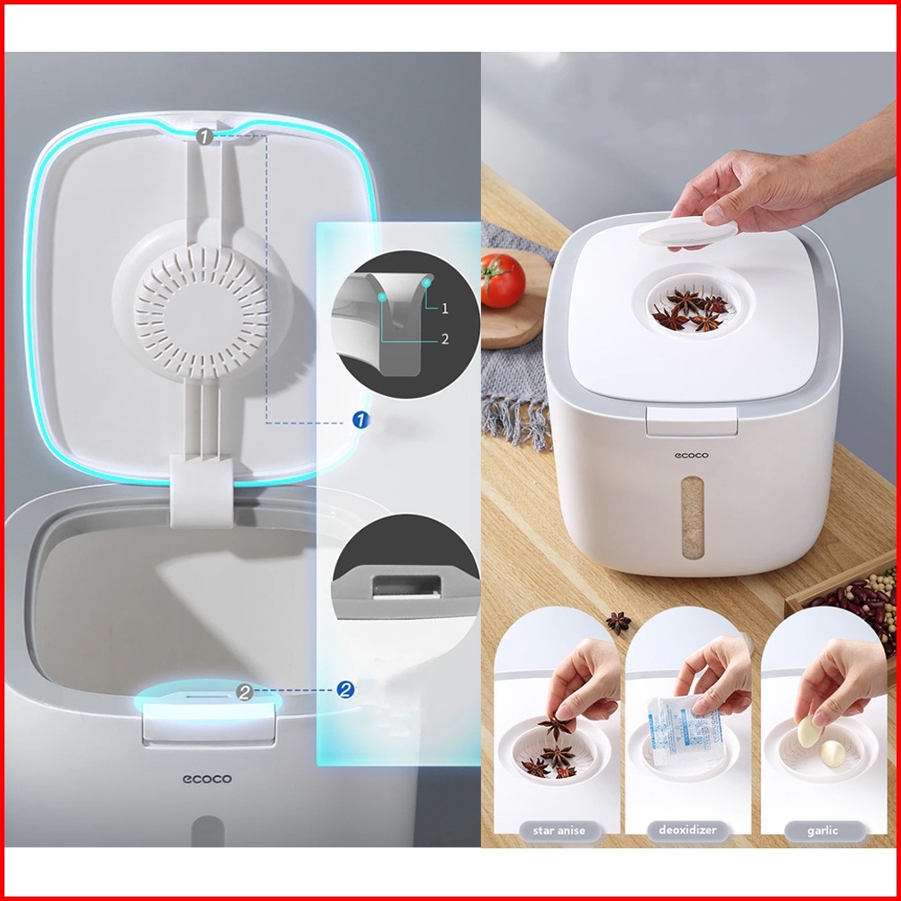 Ecoco Automatic Opening Rice Bucket Small - Tempat Beras Anti Kutu Anti Air Anti Lembab Muat 5l
