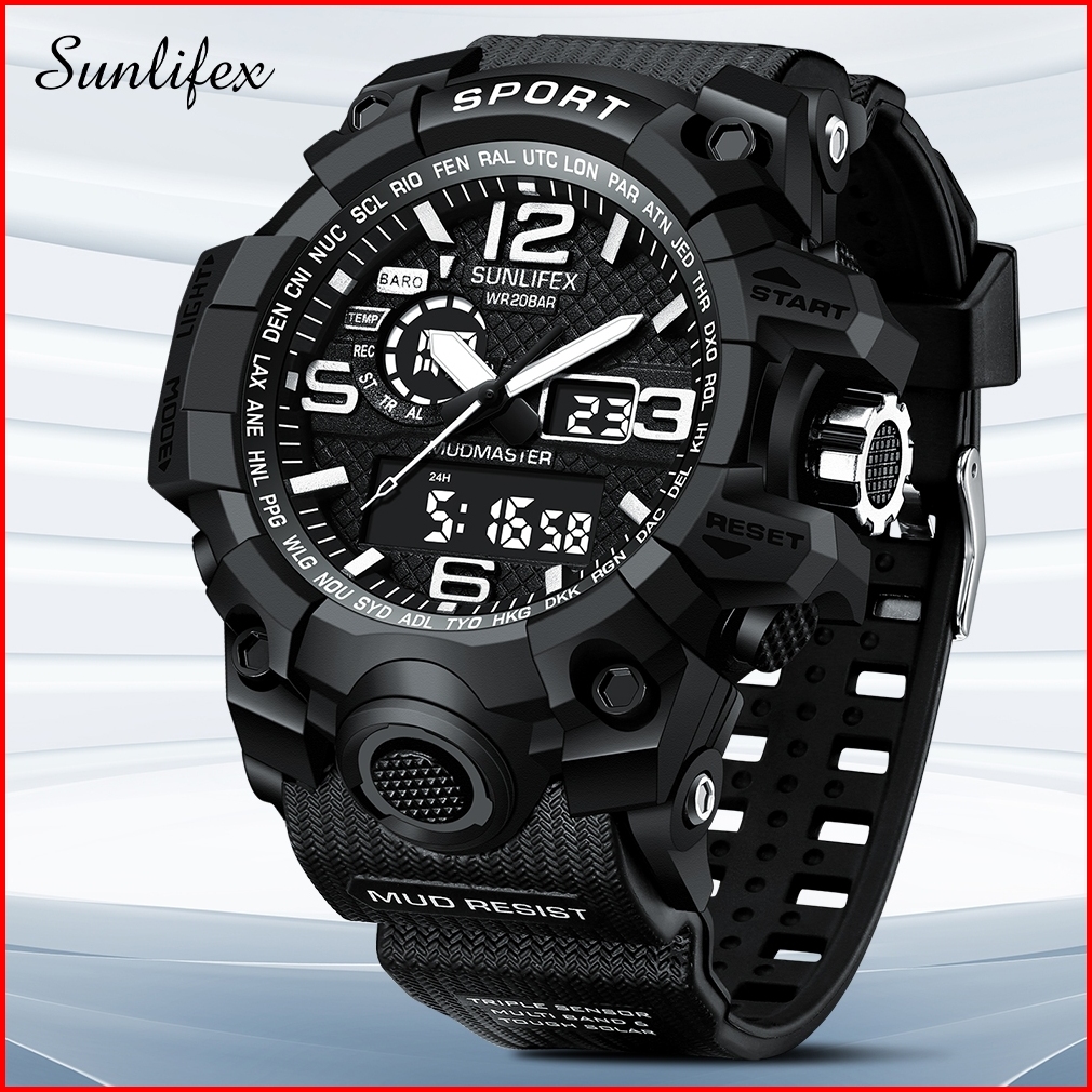 Sunlifex Jam Tangan Pria Digital Olahraga Kasual Tali Silikon Jam Tangan Cowok