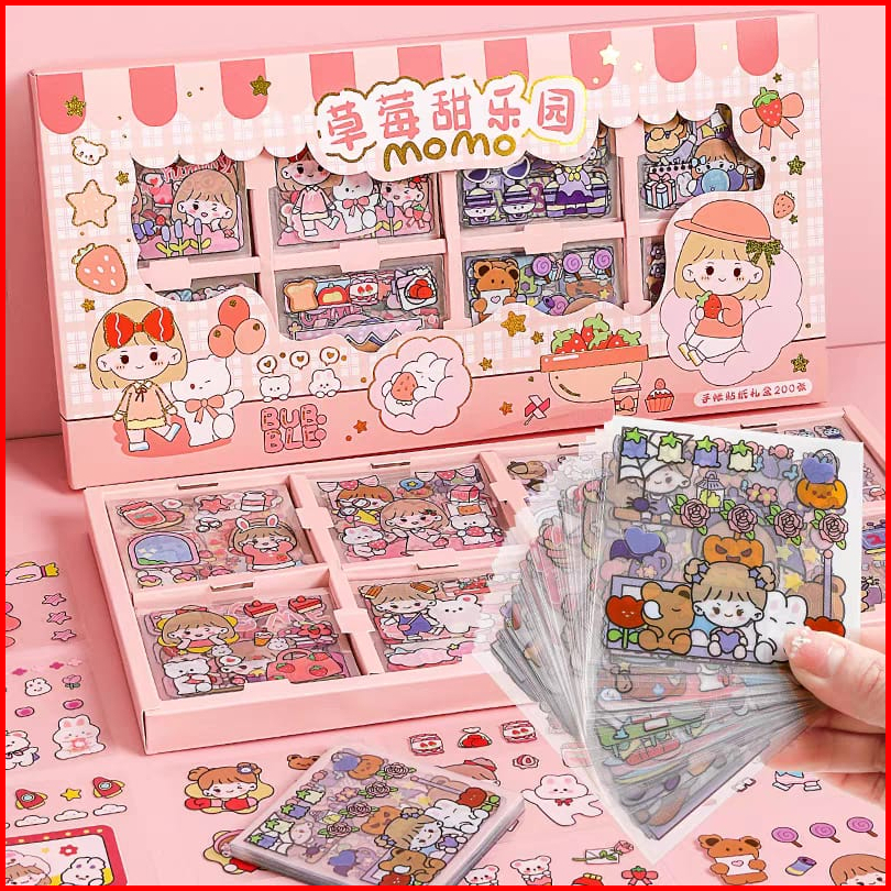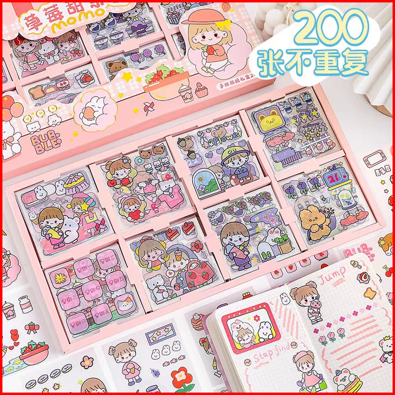 Lc 200 Lembar Stiker Diy Motif Kartun Korea Lucu Scrapbook Aestetic Sticker Momo