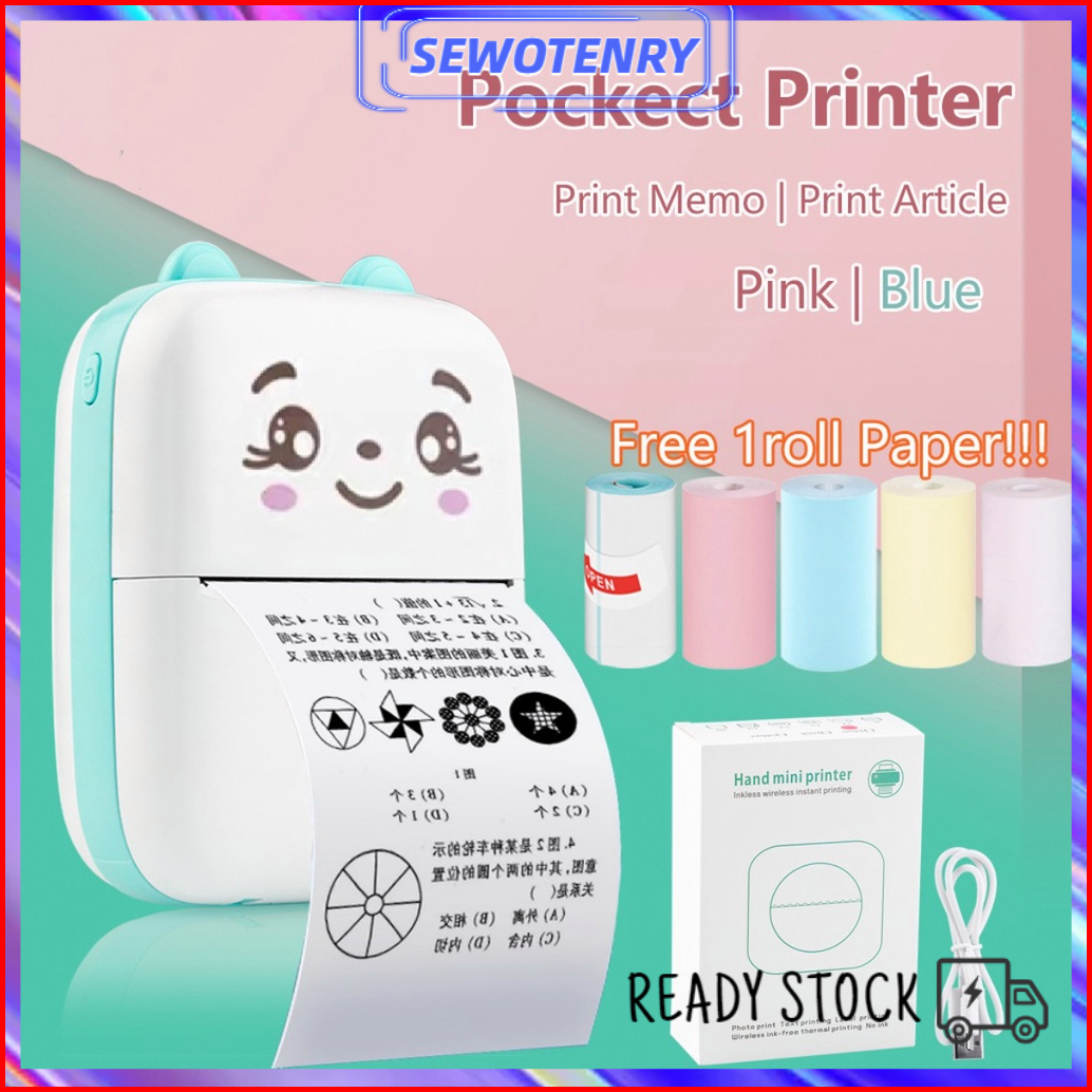 Codportable Mini Thermal Printer Bluetooth Printer Tanpa Tinta Termal Printer Label Receipt Barcode Printer