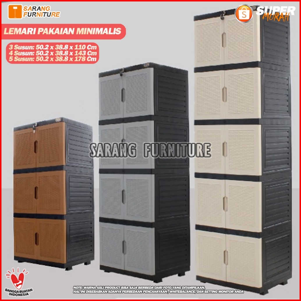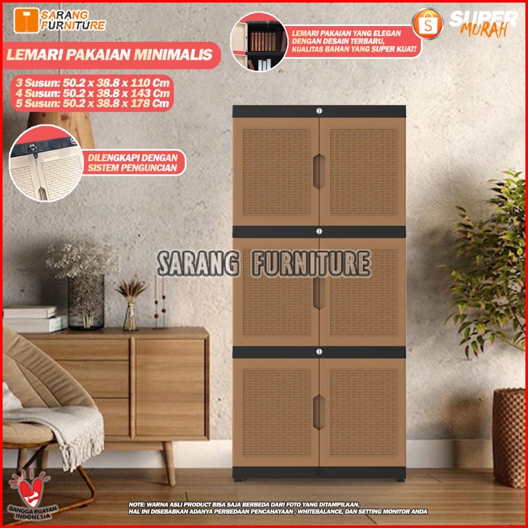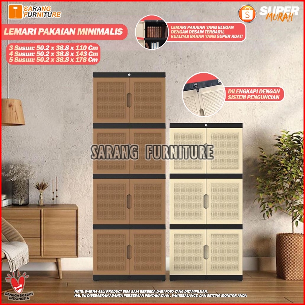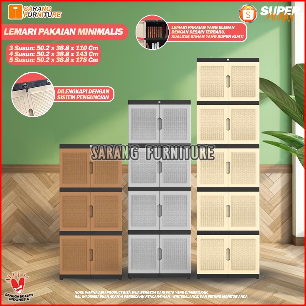 Nandos Mini Cabinet Lemari Pakaian Plastik Dengan Kunci Lemari Pintu Rotan Dilengkapi Kunci