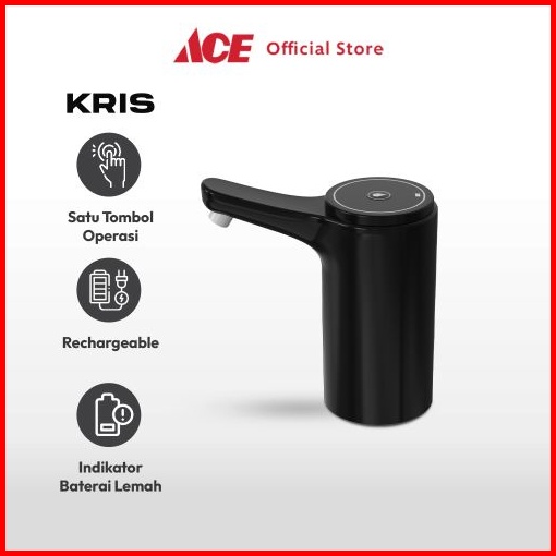 Ace Kris Pompa Air Galon Rechargeable Ap138 - Hitam Water Pump Pompa Dispenser Alat Penghisap Air Galon Elektrik