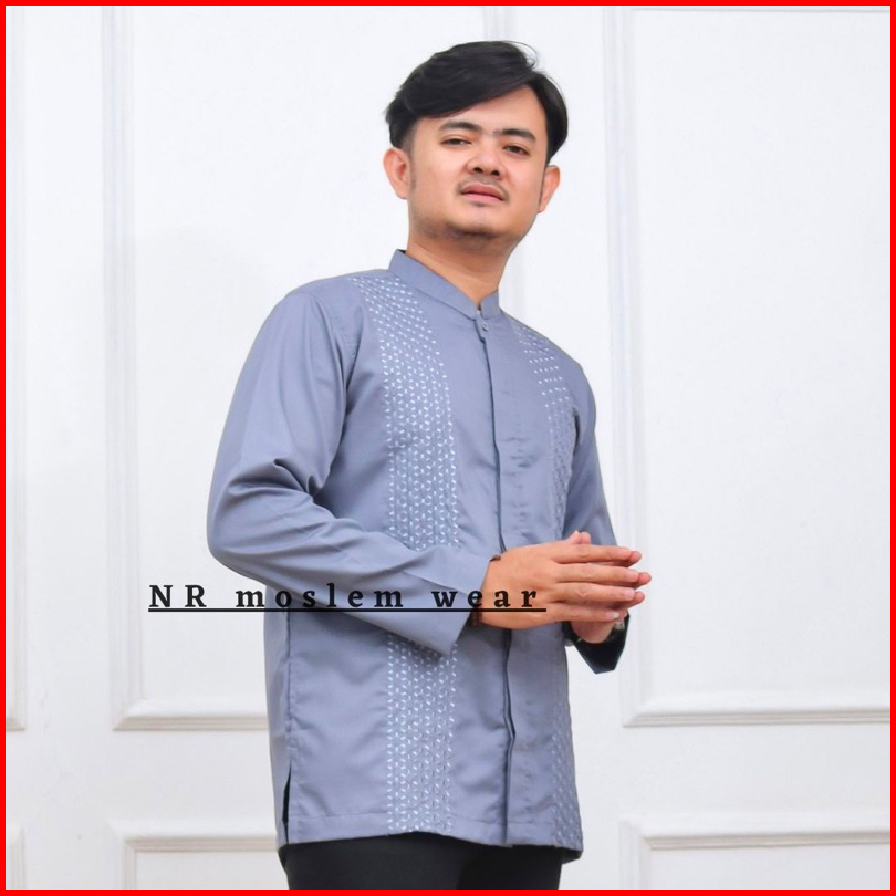Baju Koko Warna Lengan Panjang Borderan Premium Kode Ark-16