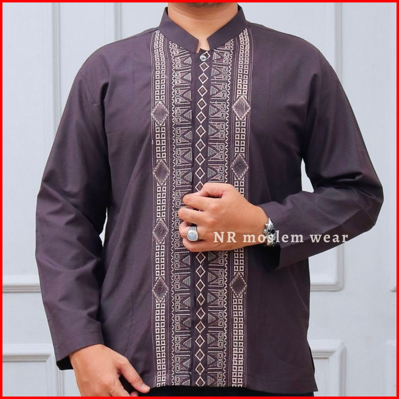 Baju Koko Kemeja Warna Lengan Panjang Baju Koko Katun Lembut Kode El-82