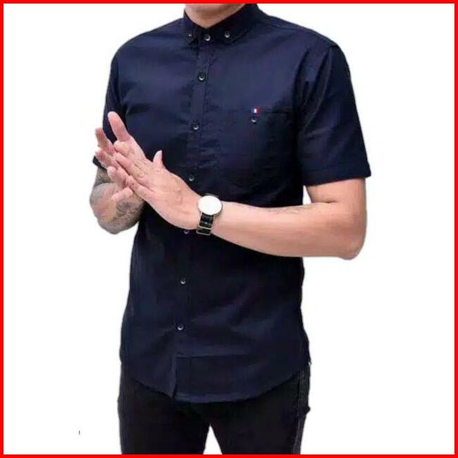Kemeja Pria Boyi Top Man Lengan Pendek Kasual Formal Kerja Putih Hitam Navy Grey Warna White