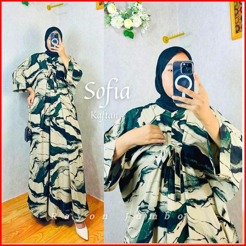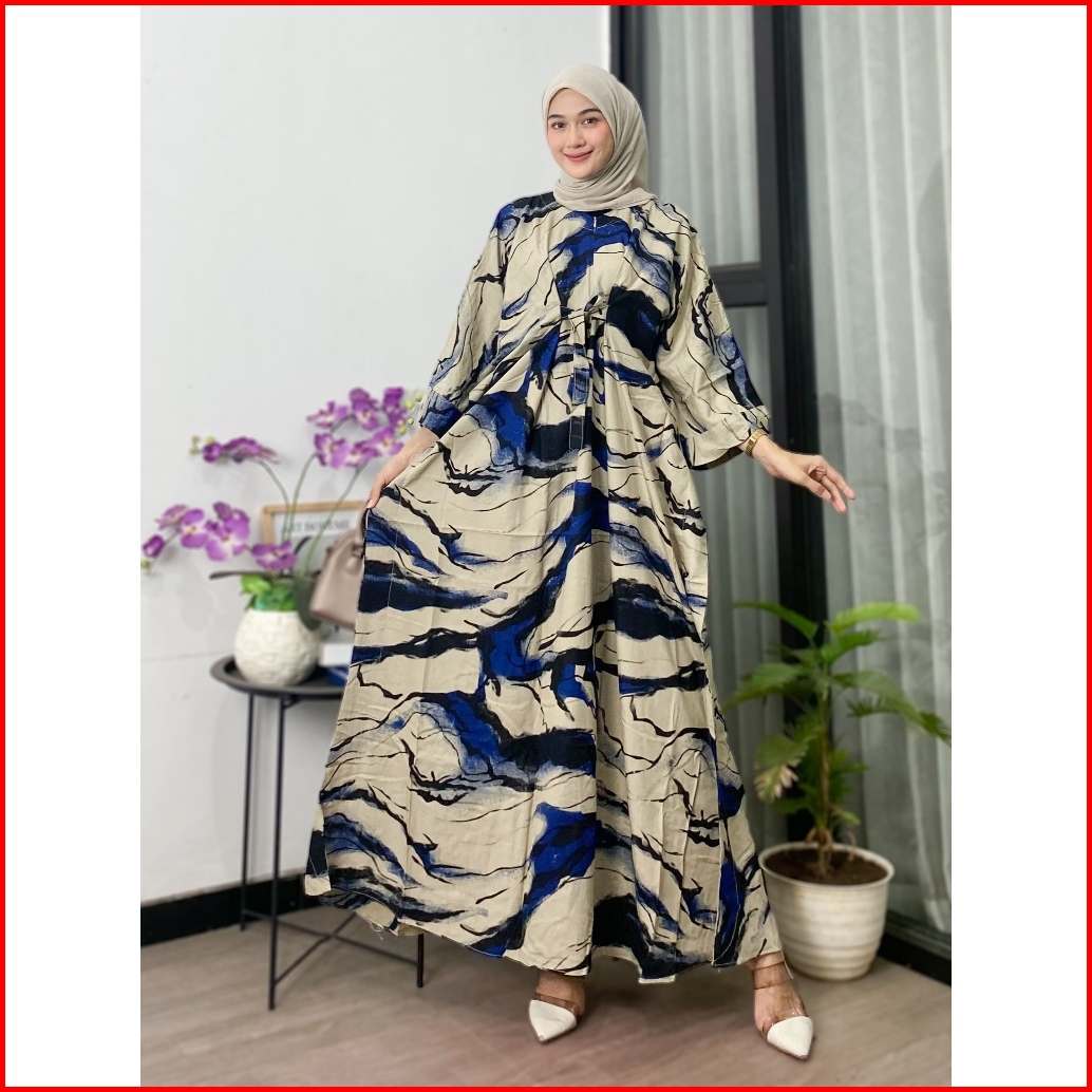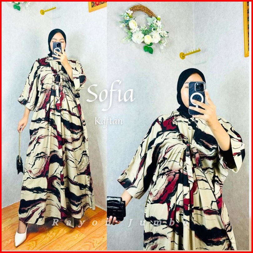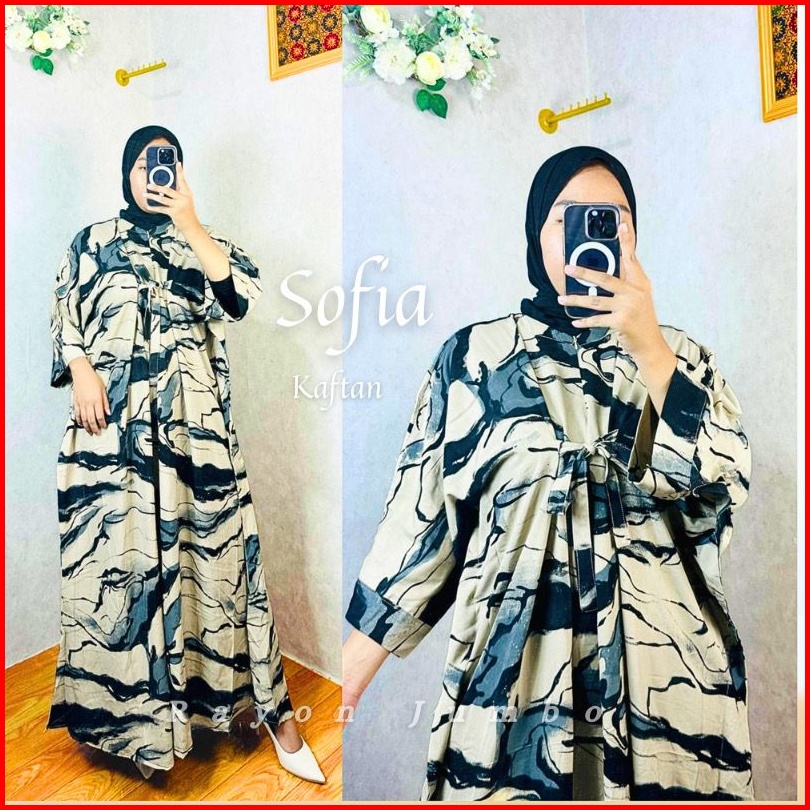 Kaftan Wanita - Sofia Kaftan Rayon Batik Abstrak Simple Elegan Jumbo Maksi Busui Rayon Premium Tali Pita Depan