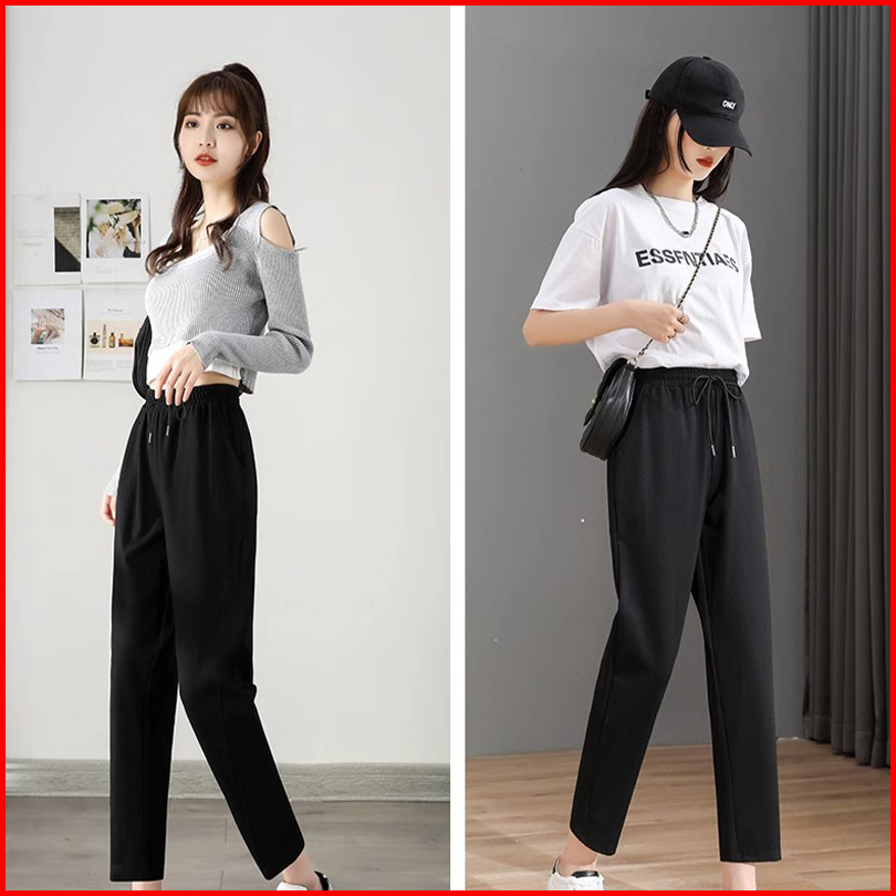 Celana Santai Wanita Gaya Korea Lurus Celana Celana Olahraga Wanita Celana Abu-abu Celana Longgar Celana Panjang Besar F