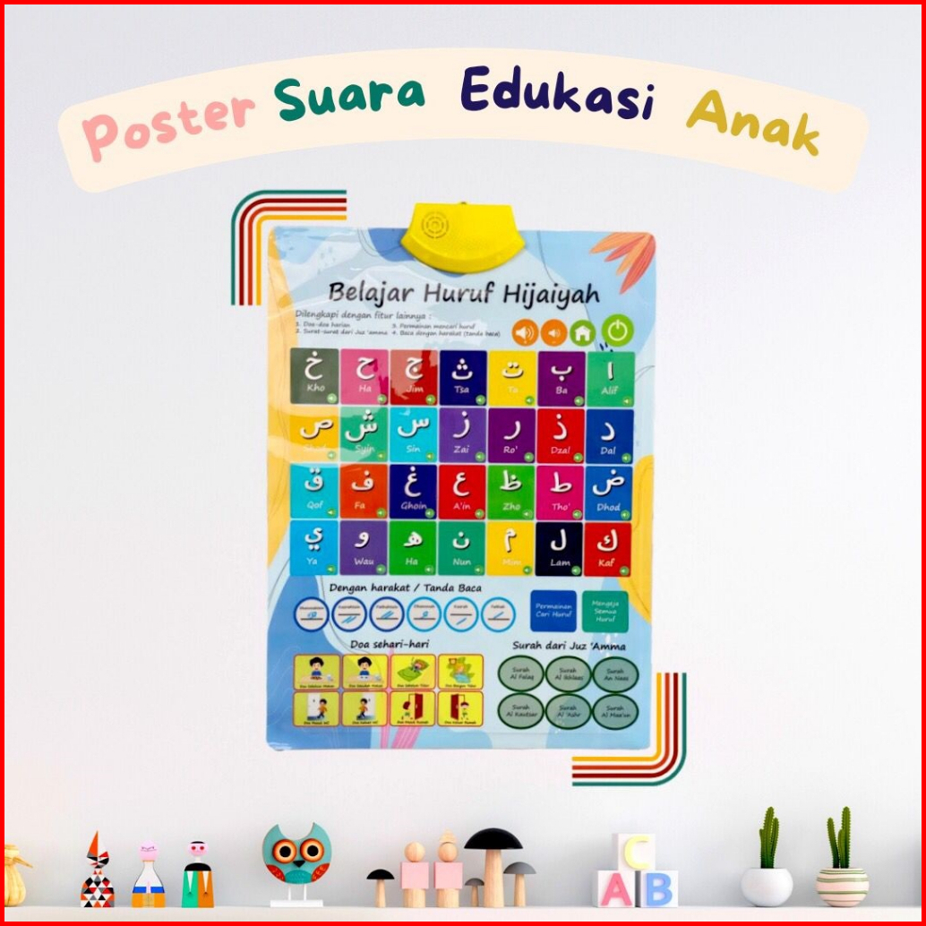 Poster Edukasi Anak Belajar Ngaji Hijaiyah Bersuara Wipe Clean