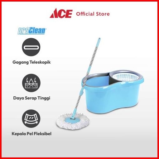 Ace Proclean Set Alat Pel Putar - Biru Kain Pel Spinning Mop With Bucket Pembersih Lantai Alat Kebersihan