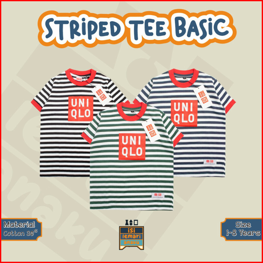 Kaos Distro Anak Salur Dominan Garis Uniqlo Lengan Pendek Bahan Katun Laki Laki Perempuan 1 Sampai 8 Tahun