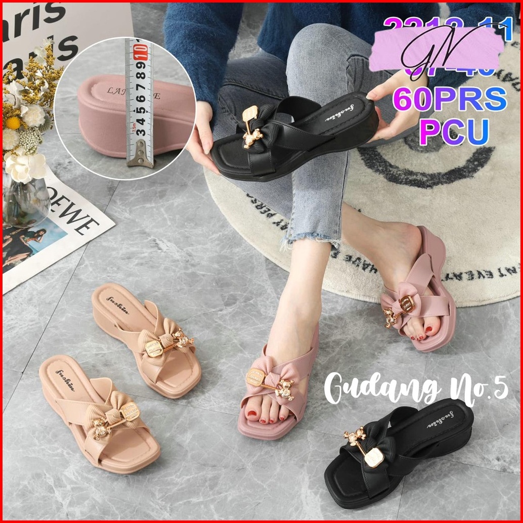 Gn-2212-11 Sandal Selop Jelly Wedges Model Pita Fashion Wanita Import Fashion Pcu