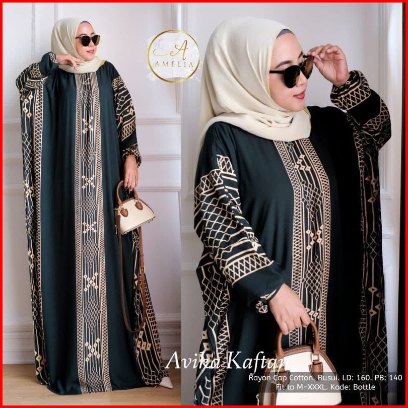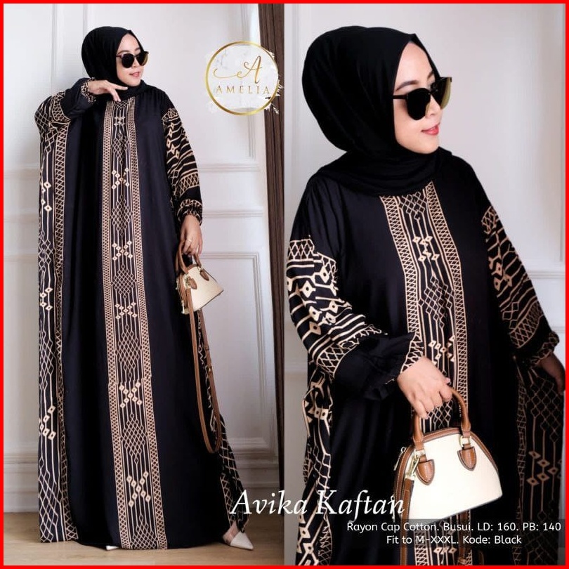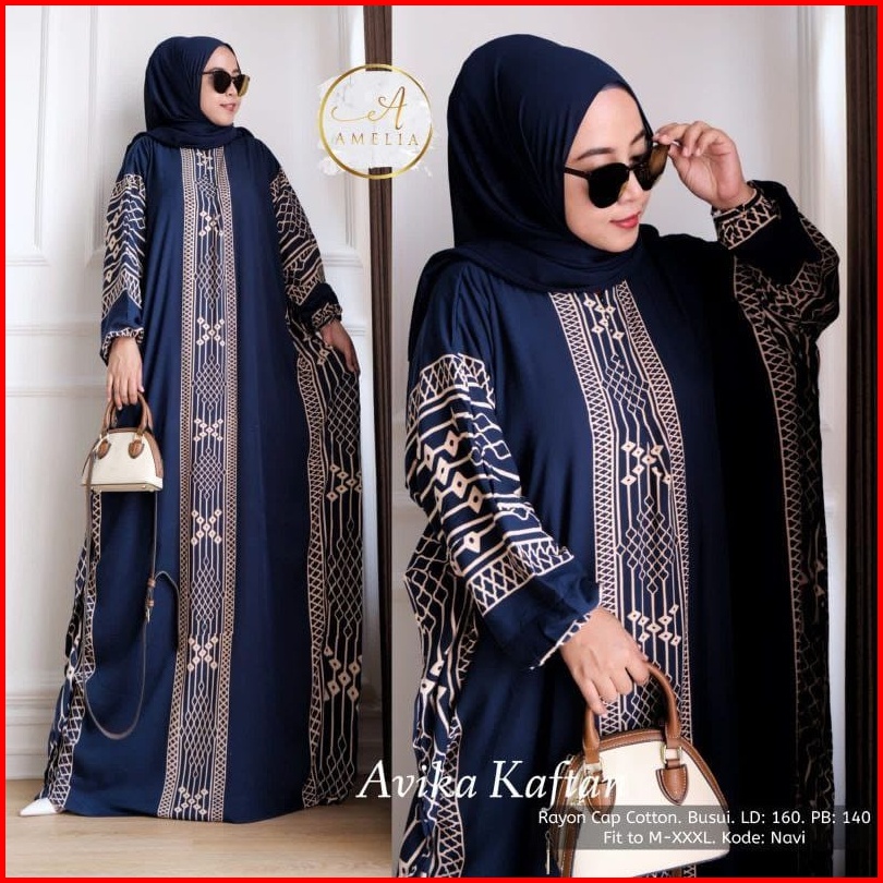 Kaftan Wanita - Avika Kaftan Batik Size Jumbo Xxxxl Motif Garis Hexagonal Lengan Panjang Busui Gamis Rayon Kaftan Kondan