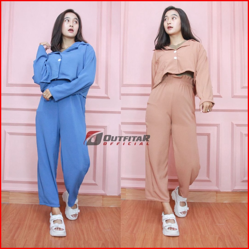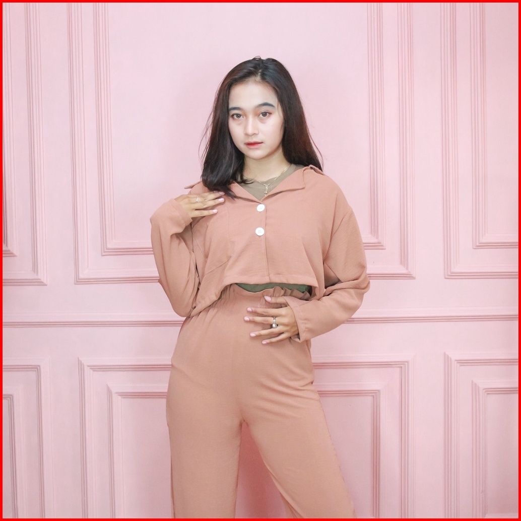 Setelan Wanita Crop Claudia Dan Celana Kulot Set Cringkle Premium